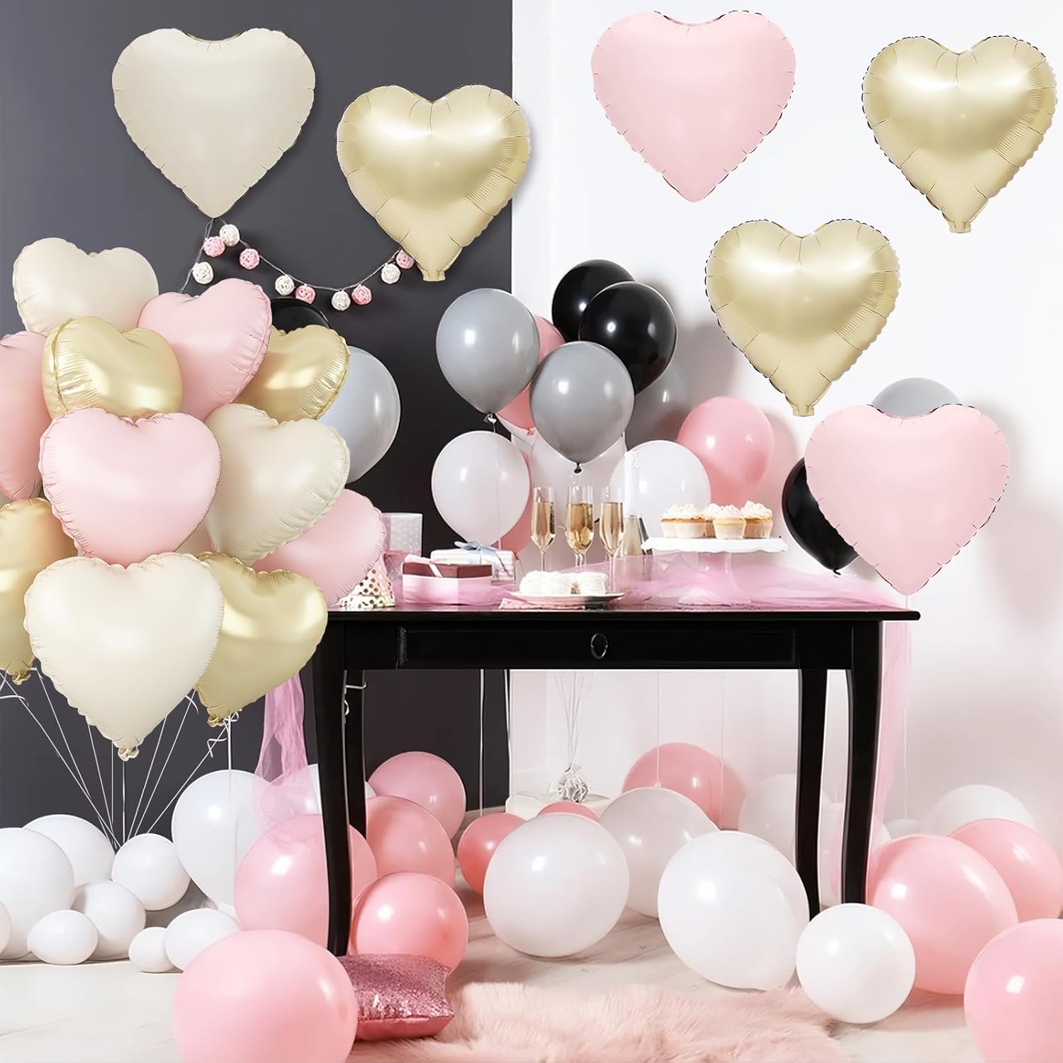 - 【WIDELY APPLICATION】This pink white gold heart balloon can be used for a variety of occasions,such as birthday,anniversary,Valentine's Day,baby shower,gender reveal,weddings,engagement,bridal shower,marriage proposals and other parties,can also be used as a photo background,etc.Make a deep impression on the party guests.