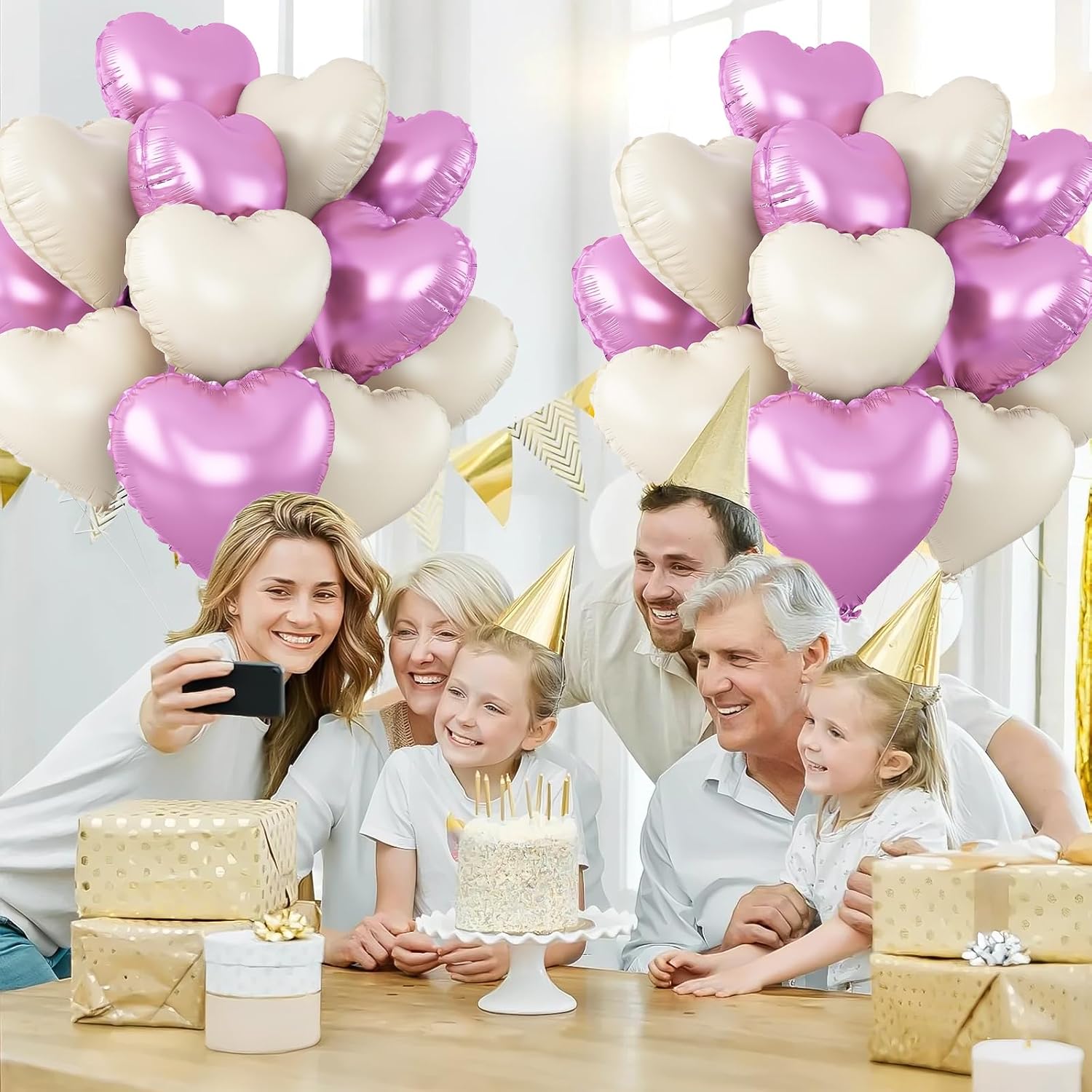 Purple Cream White Heart Balloons,12Pcs 18Inch Cream Purple Sand White Heart Shaped Foil Helium Balloons for Baby Shower Birthday Anniversary Wedding Engagement Party Decorations