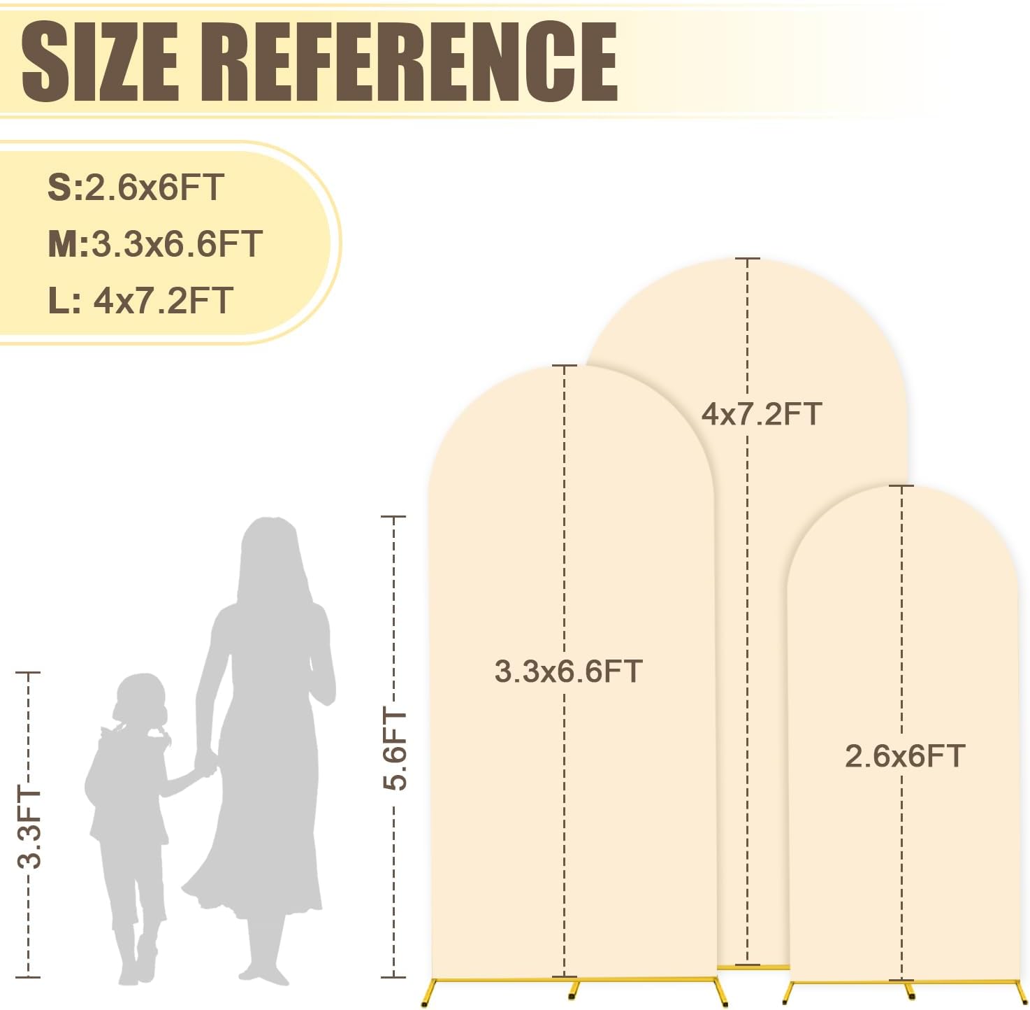 MODFUNS Arch Backdrop Stand and Cover Set of 3 Gold Wedding Arch Stand 6&6.6&7.2ft Beige Arches Cover Chiara Backdrop Stand for Party Birthday Banquet Wedding Arched Frame