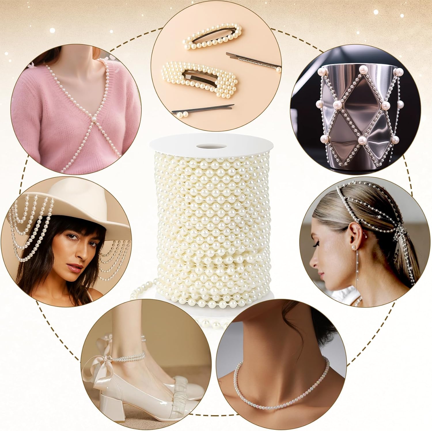 - Wide Applications: The pearl string is perfect for DIY crafts and decorations such as DIY jewellery, hair accessories, clothing, shoes, cards, scrapbooking, bridal bouquets, tiaras, wedding wreaths, wedding backdrops, flowers, porches, tables, chairs and more