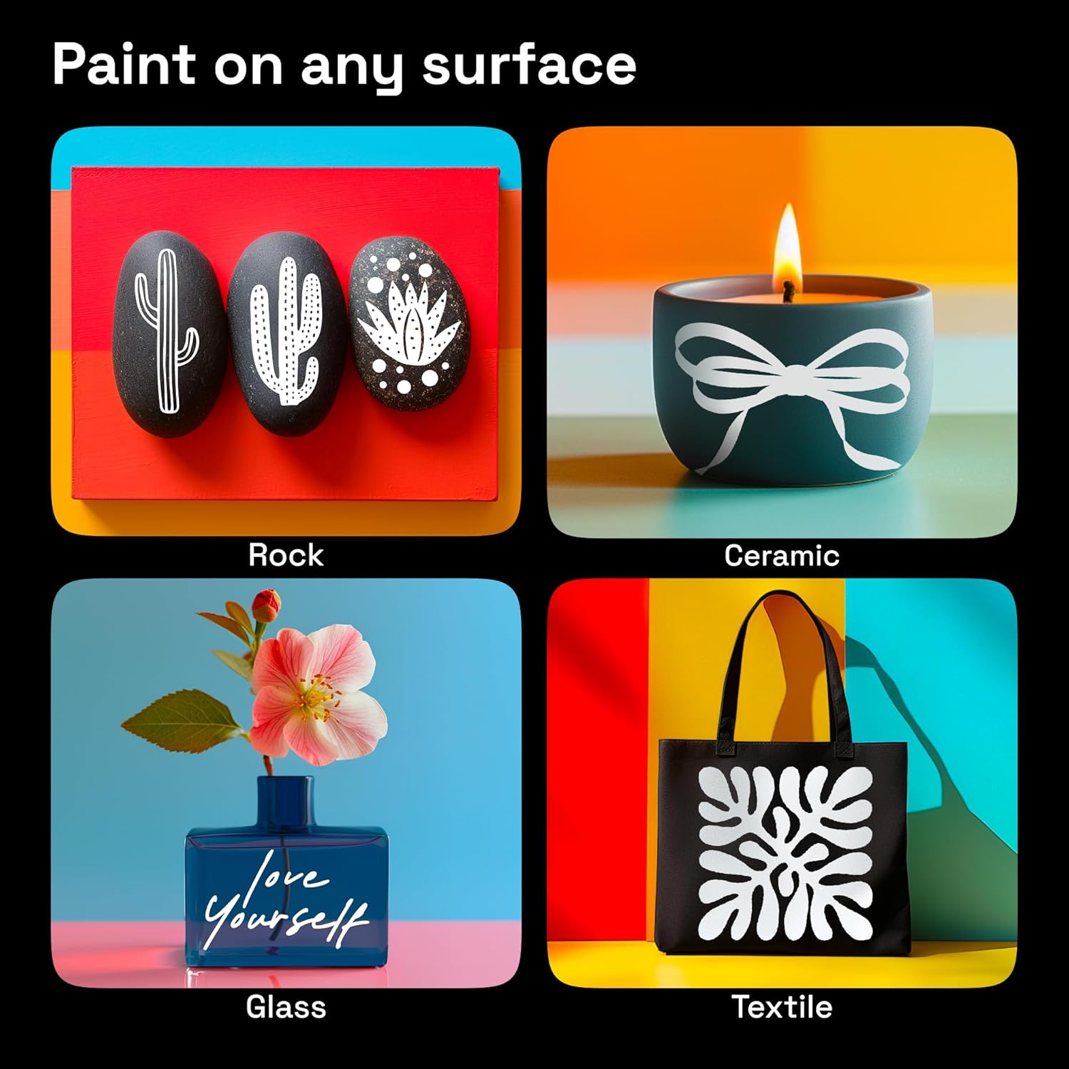 - Non-Toxic: Each paint pen conforms to ASTM D-4236 standards. Both kids and adults, beginners and pros, can rock painting pens and create whatever! These paint pens are perfect for when you just need paint pens for finishing touches on your art projects