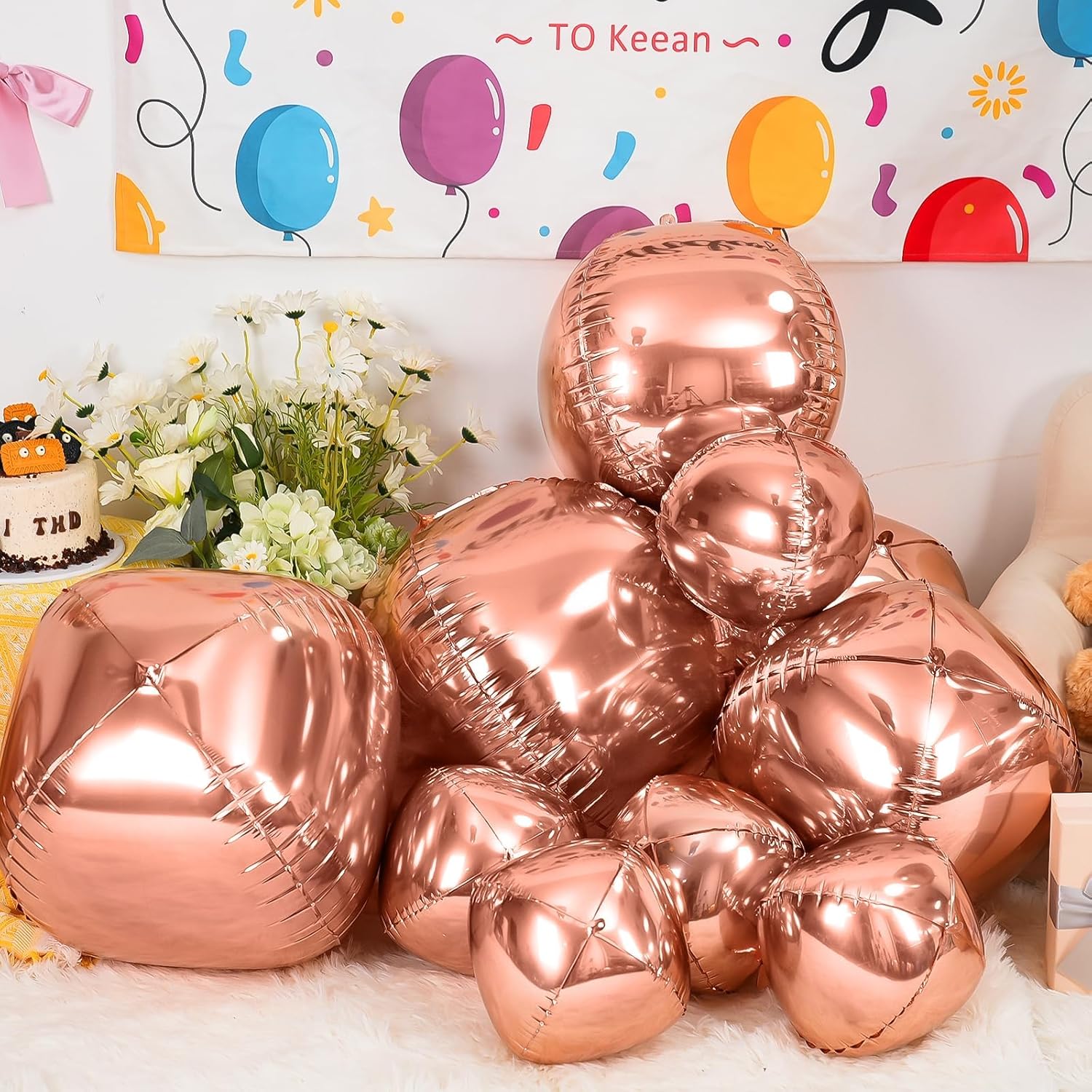 - Package: You will receive 12pcs 4D rose gold round foil balloon, 3pcs 22inch + 4pcs 15inch + 5pcs 10inch + 1 straw + 1 roll of ribbon. Different sizes balloons in can meet your party needs. 10inch mini size balloons do not support helium filling and floating. The classic solid rose gold chrome balloons are perfect for any rose gold-themed party.
