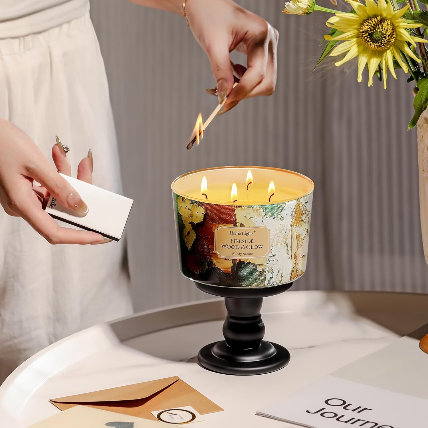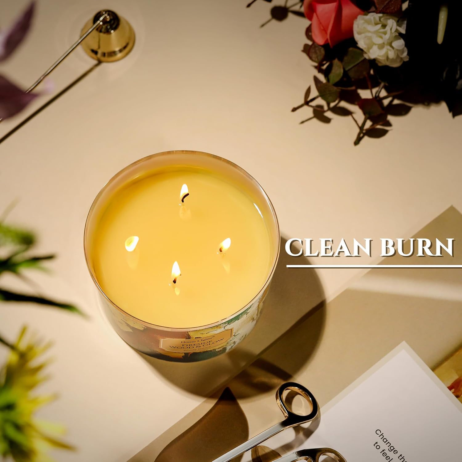 HomeLights 4-Wick Candles for Home Scented - 18oz Soy Wax Blend Candle Long-Lasting Fragrance, Industrial Chic Home Decor and Housewarming Gifts, Fireside Wood & Glow