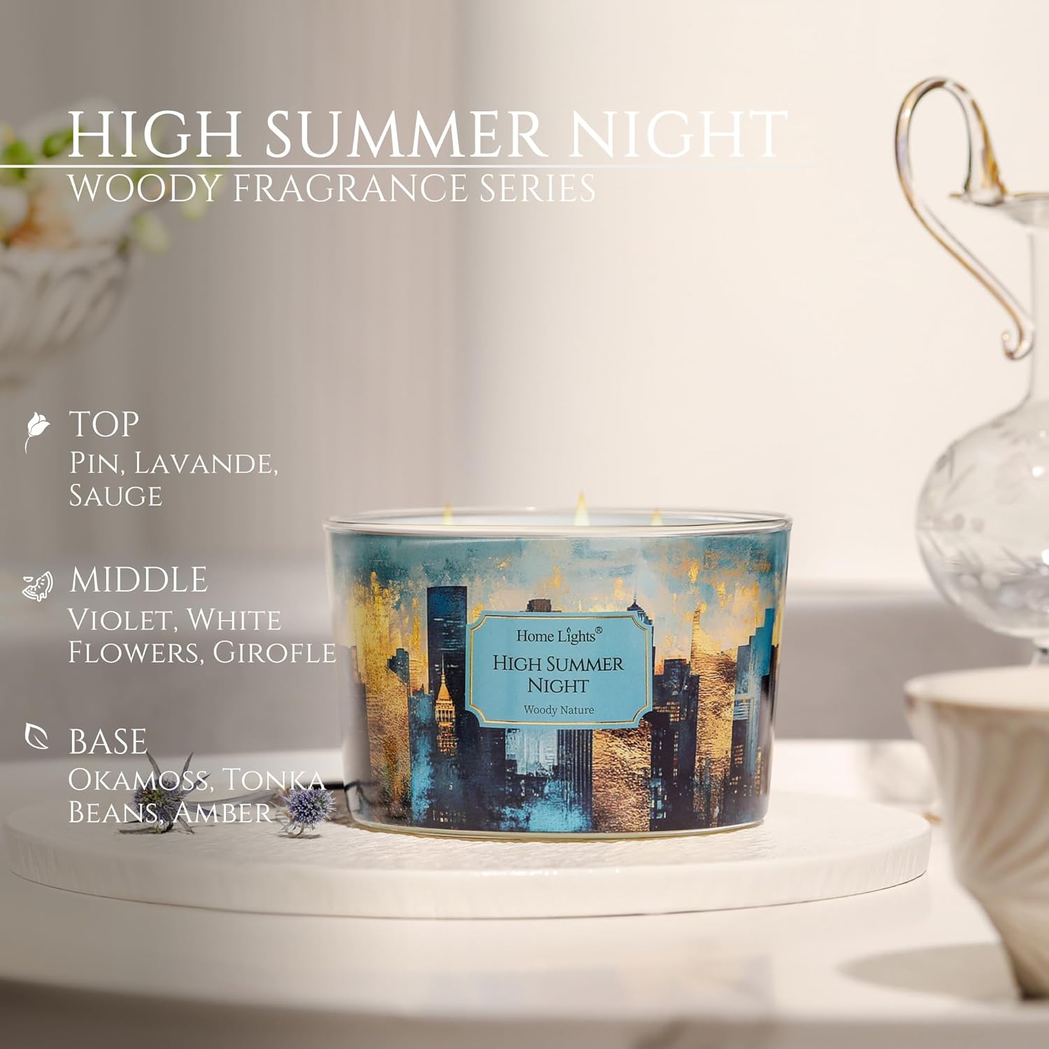 HomeLights High Summer Night Scented Candles | 18oz Soy Candles Industrial Chic 4-Wick Large Candle Jars | Ideal Candle Gifts for Events, Home Decor Stress, Relief & Relaxation
