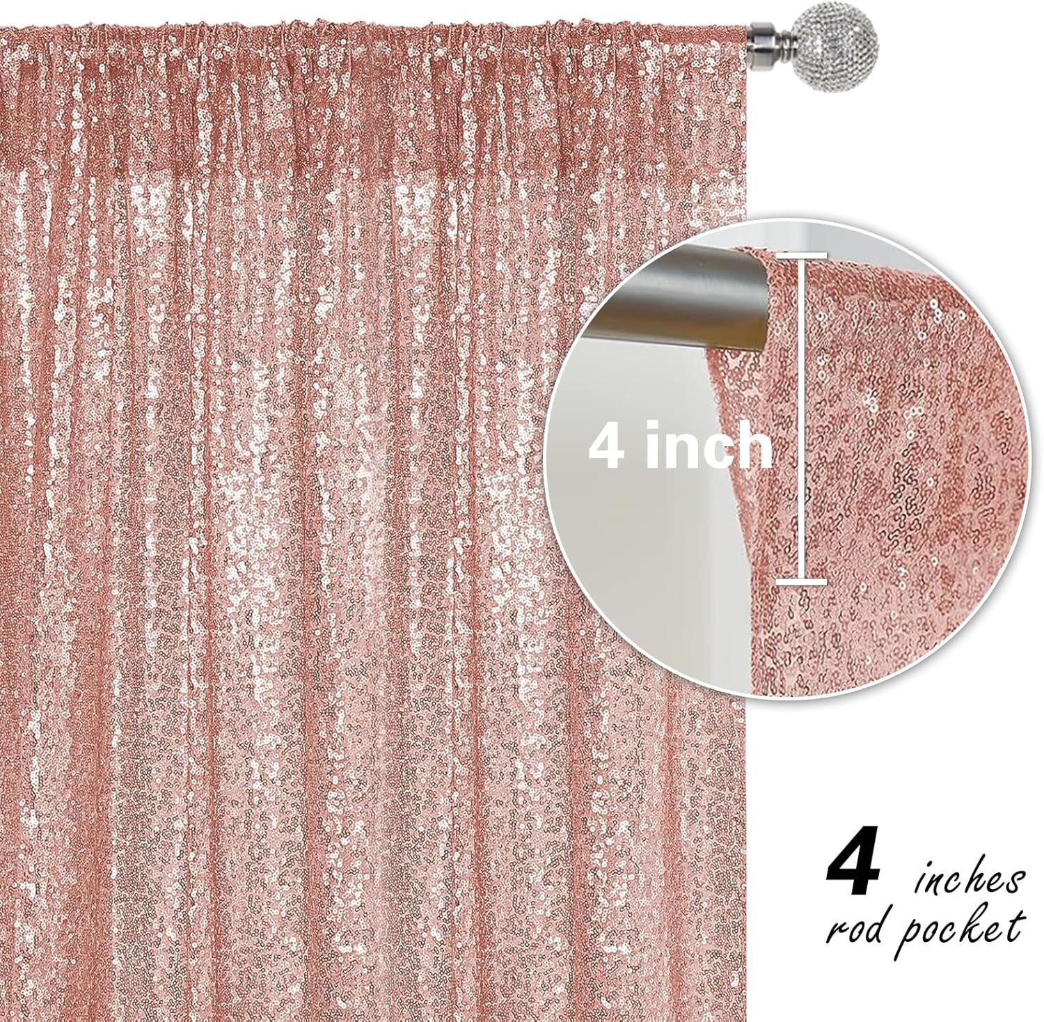 - Package Include: 2Pcs 2FT Wide X 8FT Height sequin backdrop curtain with a 4-inch wide rod pocket on the top, which is easy to install.