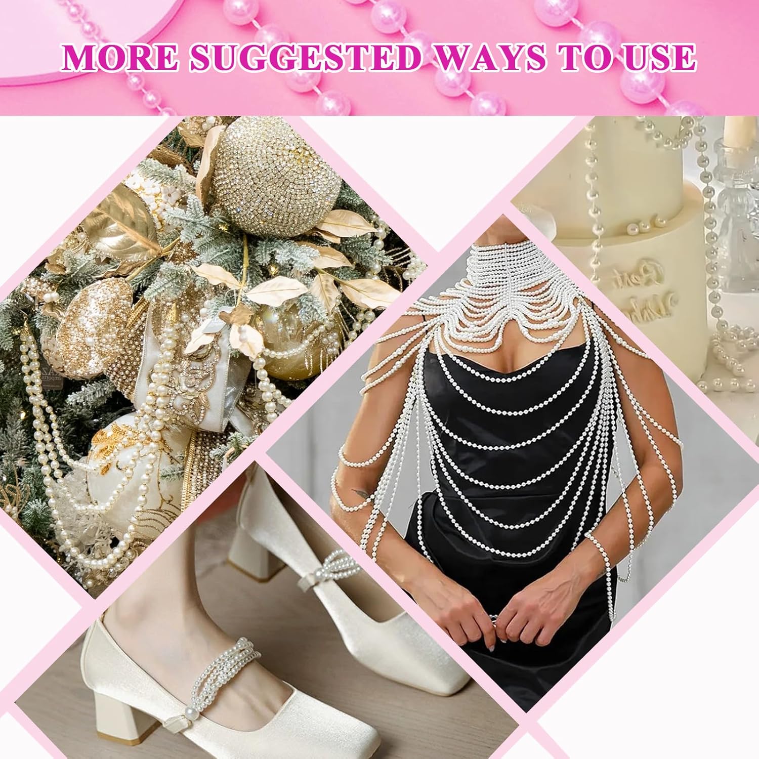 - Materials: These faux pearl garland are made of plastic ABS pearl beads, which are attached to the string and can not be removed. These pearl beads strings are both economical and add a beautiful touch to any project. Great for Shabby chic or Bridal decoration embellishment decor or even place them in the hair