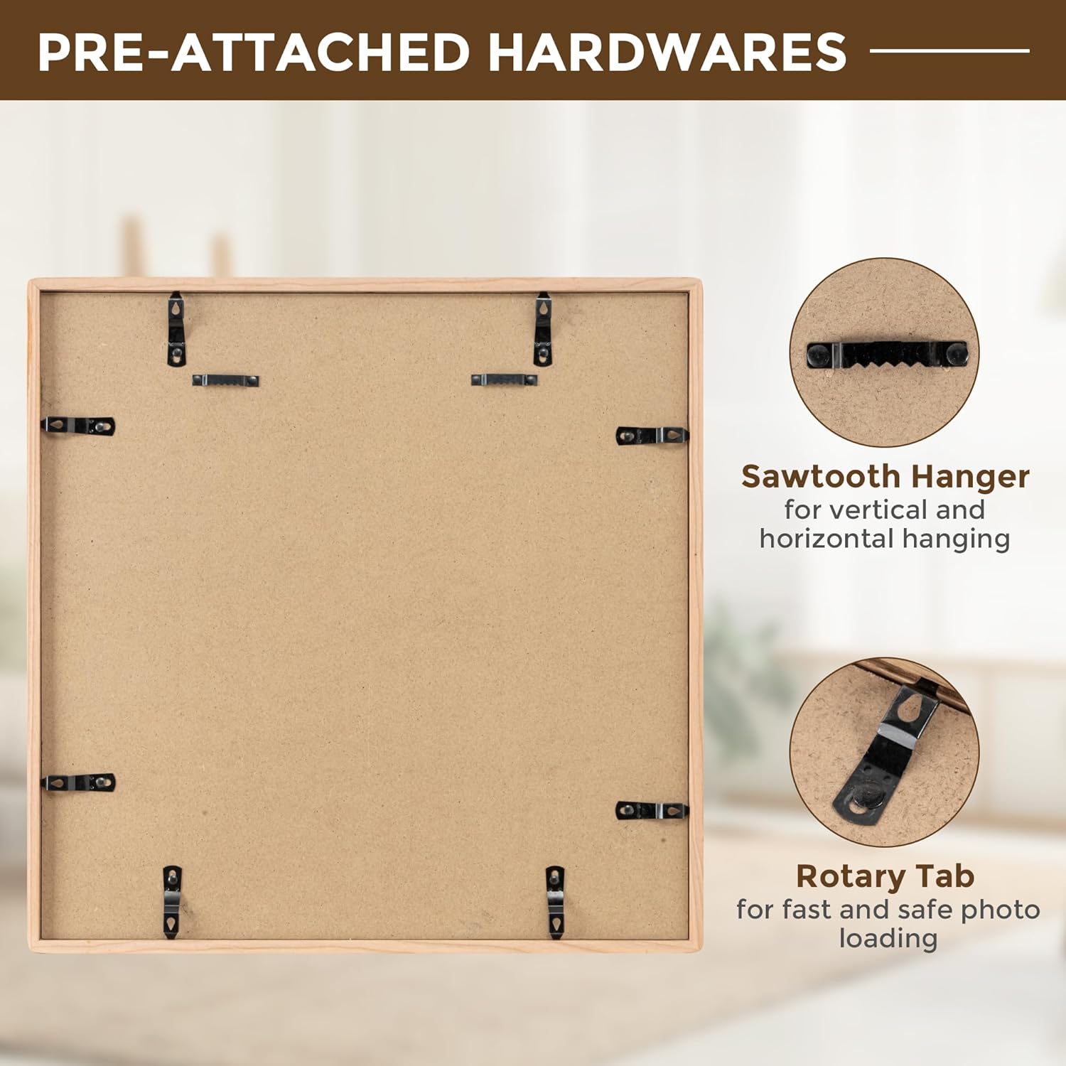 - Display As You Like: Designed for versatility, this photo frame comfortably accommodates an 16x16 photo with a mat or an 12x12 photo without a mat, offering flexibility to suit your unique display preferences. Whether you choose to showcase your photos horizontally or vertically, this wood picture frame adapts to fit your vision perfectly.