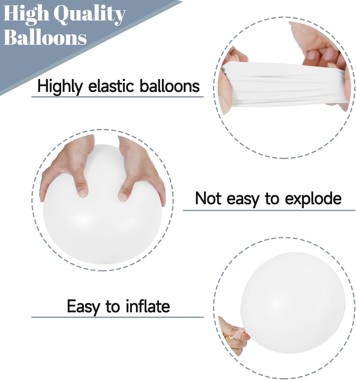 - Dusty blue balloons Easy to Assemble: Blow them up with mouth, pump or helium. If you want them to float, make sure to fill them with helium. You can use the ribbons that come with it to link the balloons together well.