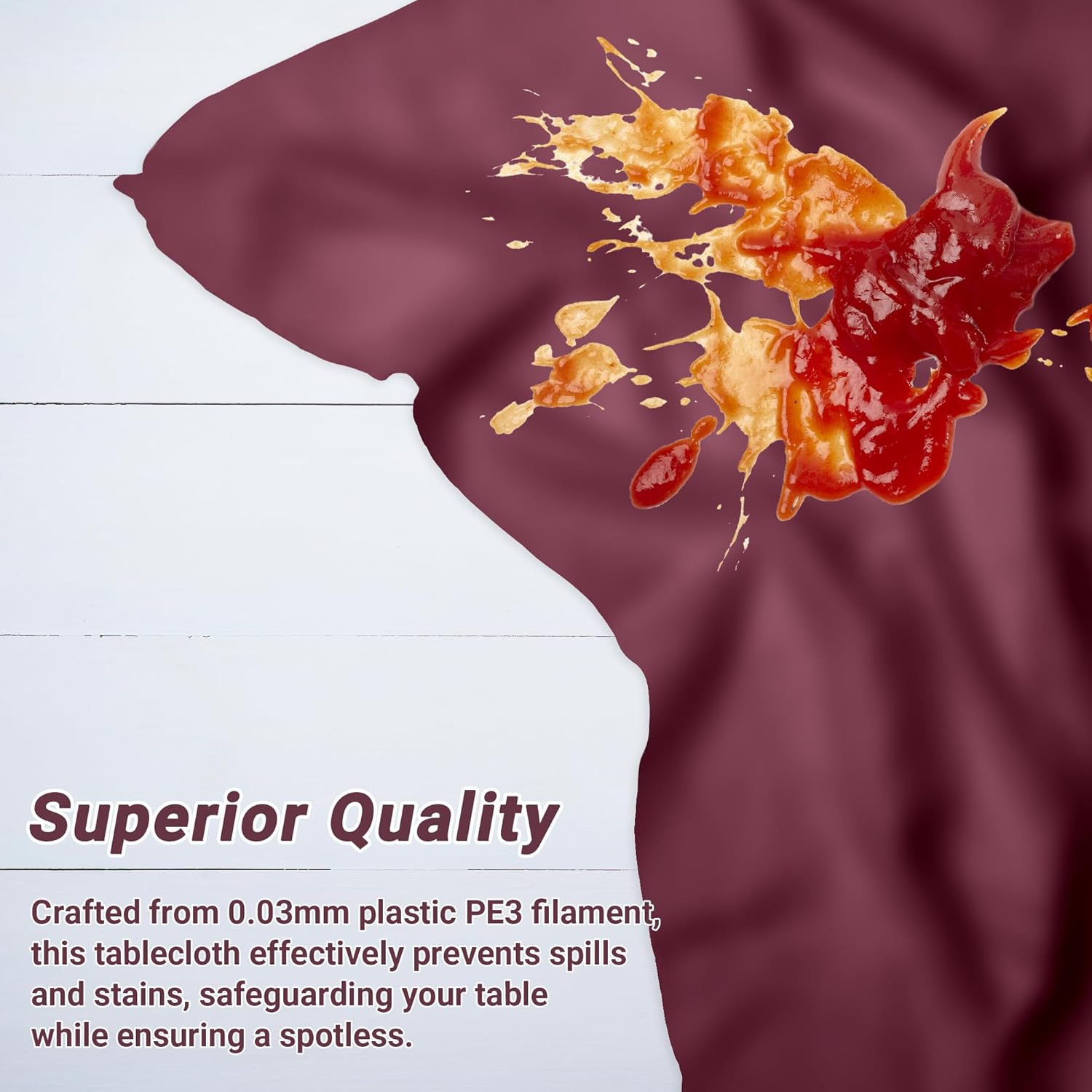 - Multi-Purpose Use: Transform every occasion with our wine-red plastic table cover, crafted to effortlessly transition from rustic BBQ party decorations to elegant anniversary table setups. This square tablecloth adapts to diverse needs—cover it over picnic tables for casual outdoor gatherings, proving one table cloth truly conquers all seasons and celebrations.