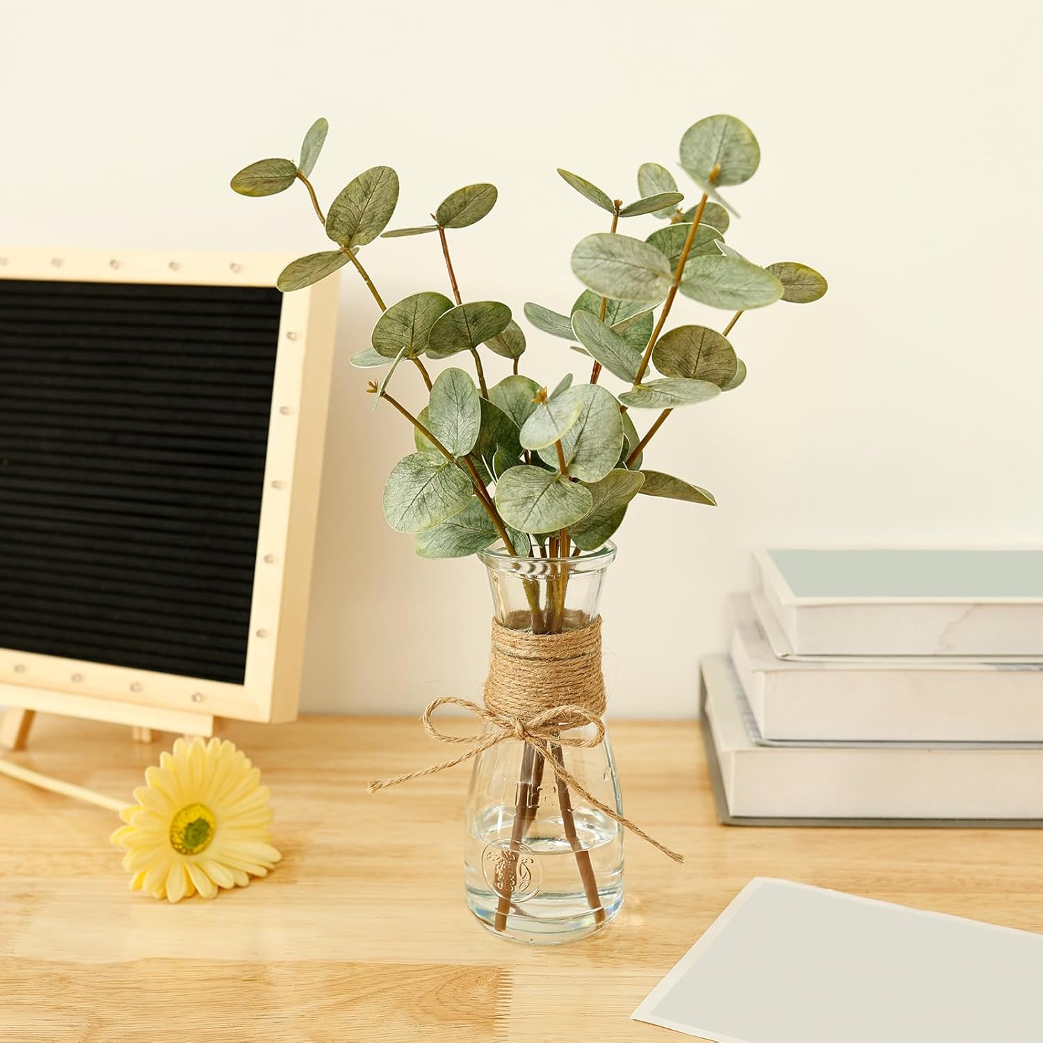 Artificial Eucalyptus Stems in Glass Vase Decorative Greenery Artificial Plant with Double Sided Green Eucalyptus Leaves for Home Office Decor (Green)
