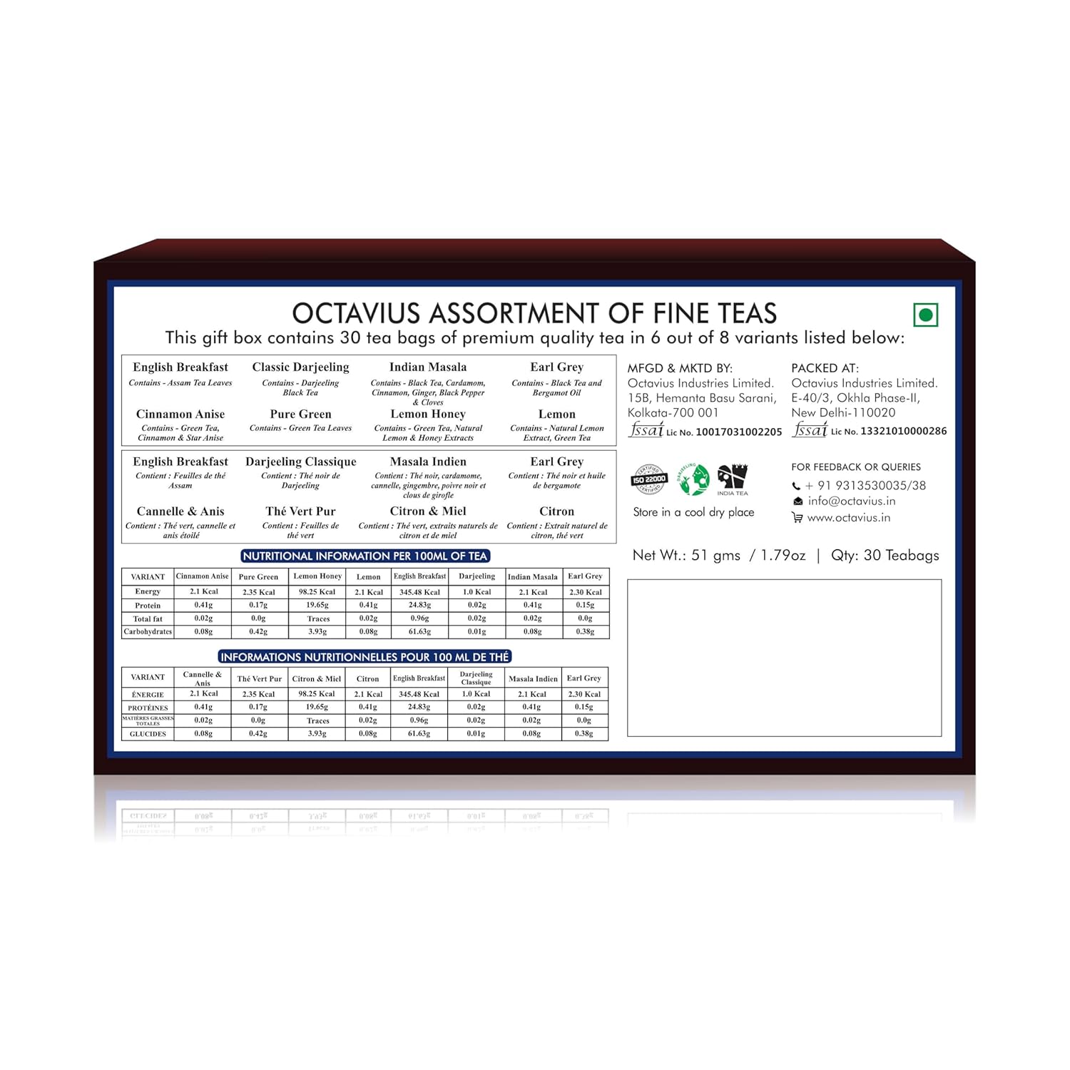 Octavius Urban Print Wooden Tea Sampler Box | Variety Pack Sampler | Perfect For Gifting & Thanksgiving - 6 Flavours & 30 Bags