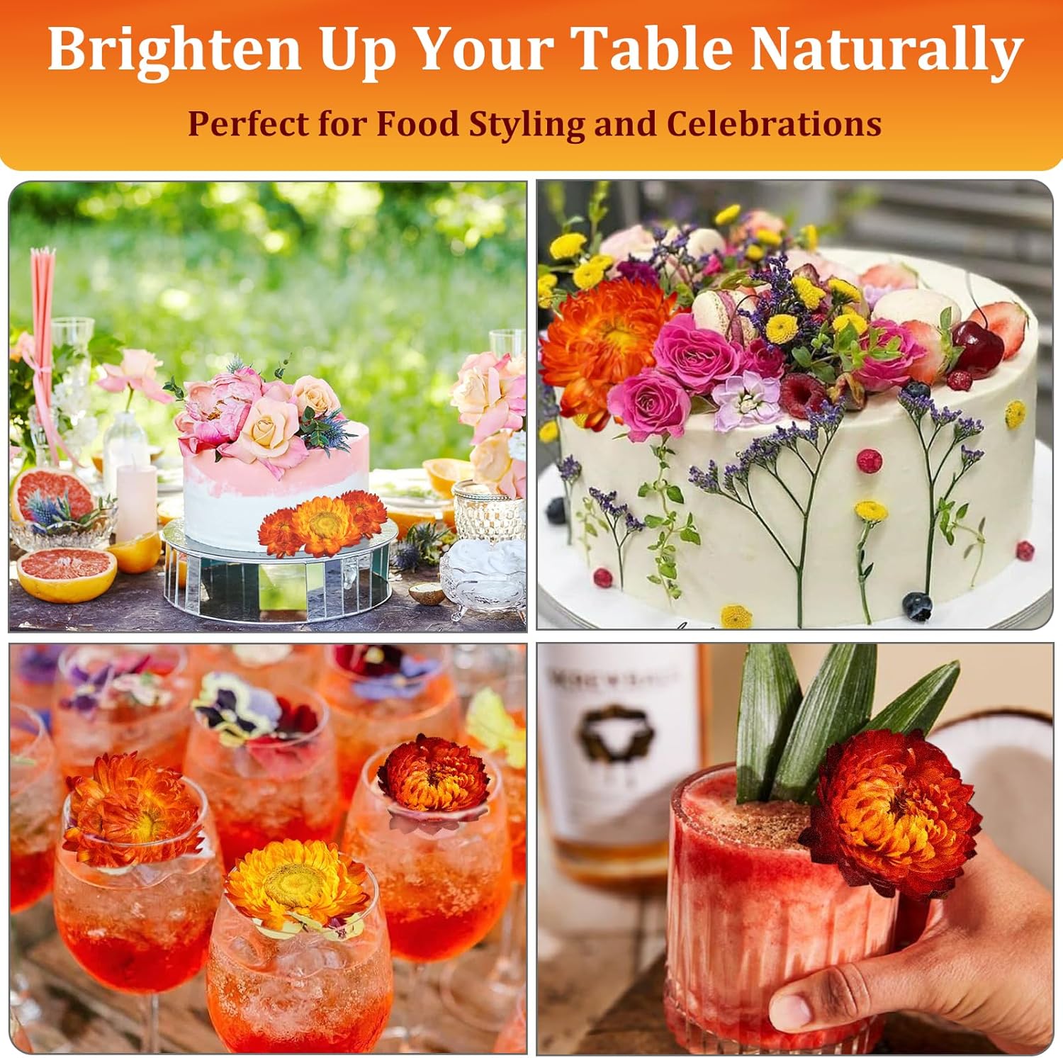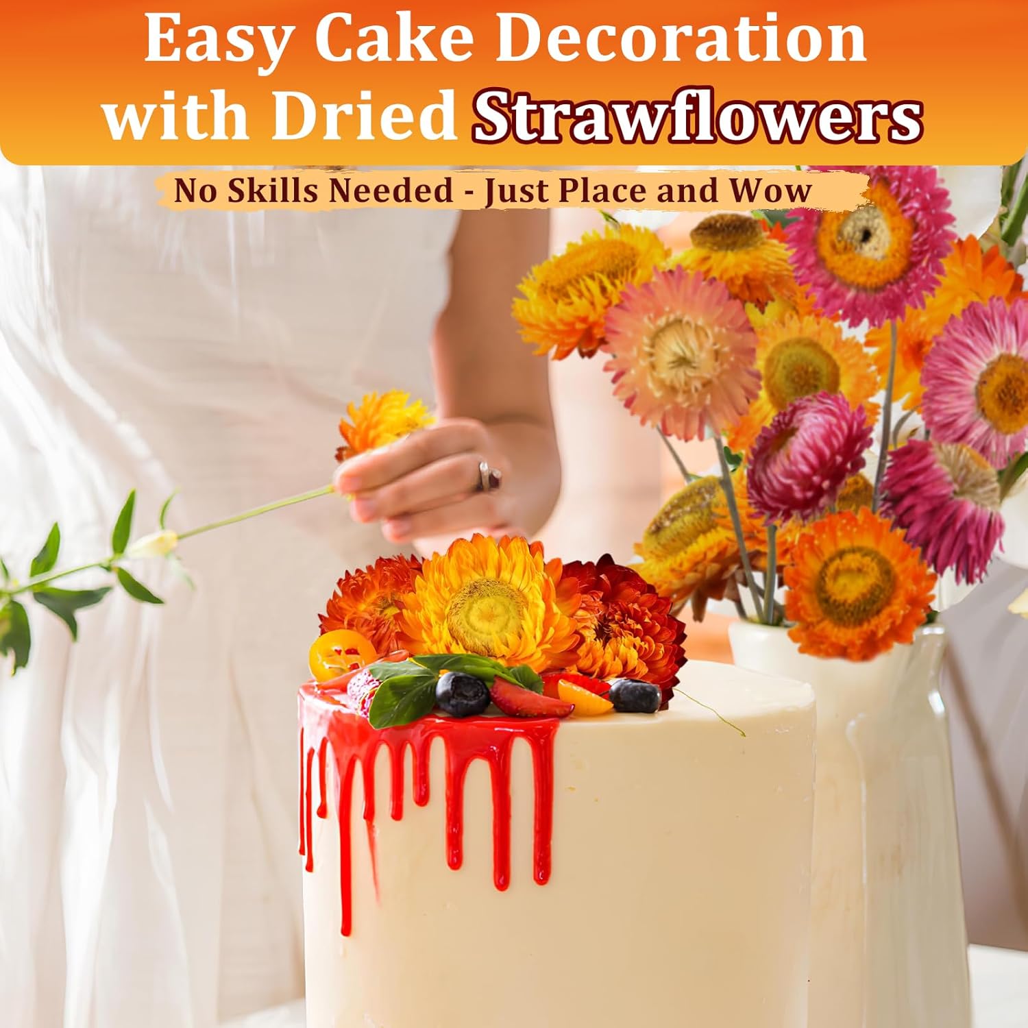 - Vivid Natural Colors: Featuring naturally dried colorful blooms, our dried strawflowers add a stunning visual touch to cupcakes, wedding cakes, drinks, and artistic desserts