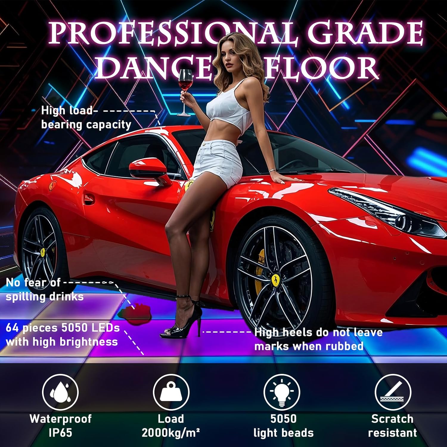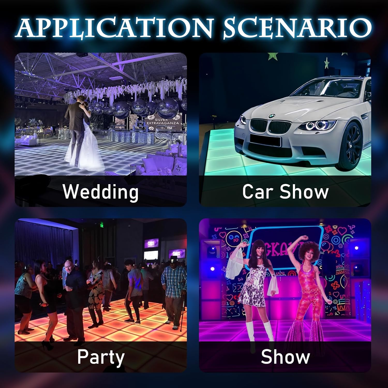 - ➤【Commercial-Grade Durability & Safety】Built for heavy-duty use with 10mm tempered glass (scratch-resistant, waterproof IP65) and anti-slip surface, supporting 500kg/㎡ load capacity. The 50,000-hour LED lifespan ensures long-term reliability for clubs, stages, and outdoor events.