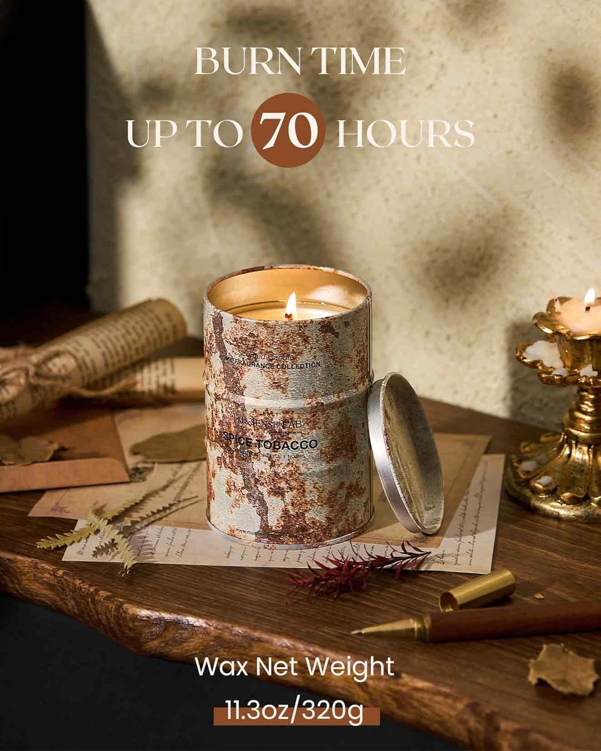 M&SENSE Spice Tobacco Scented Candles Natural Non Toxic, Aromatherapy Candle for Stress Relief Meditation Relaxing, Housewarming Gifts for Women Men, 11.3oz 70 Hour Long Burning