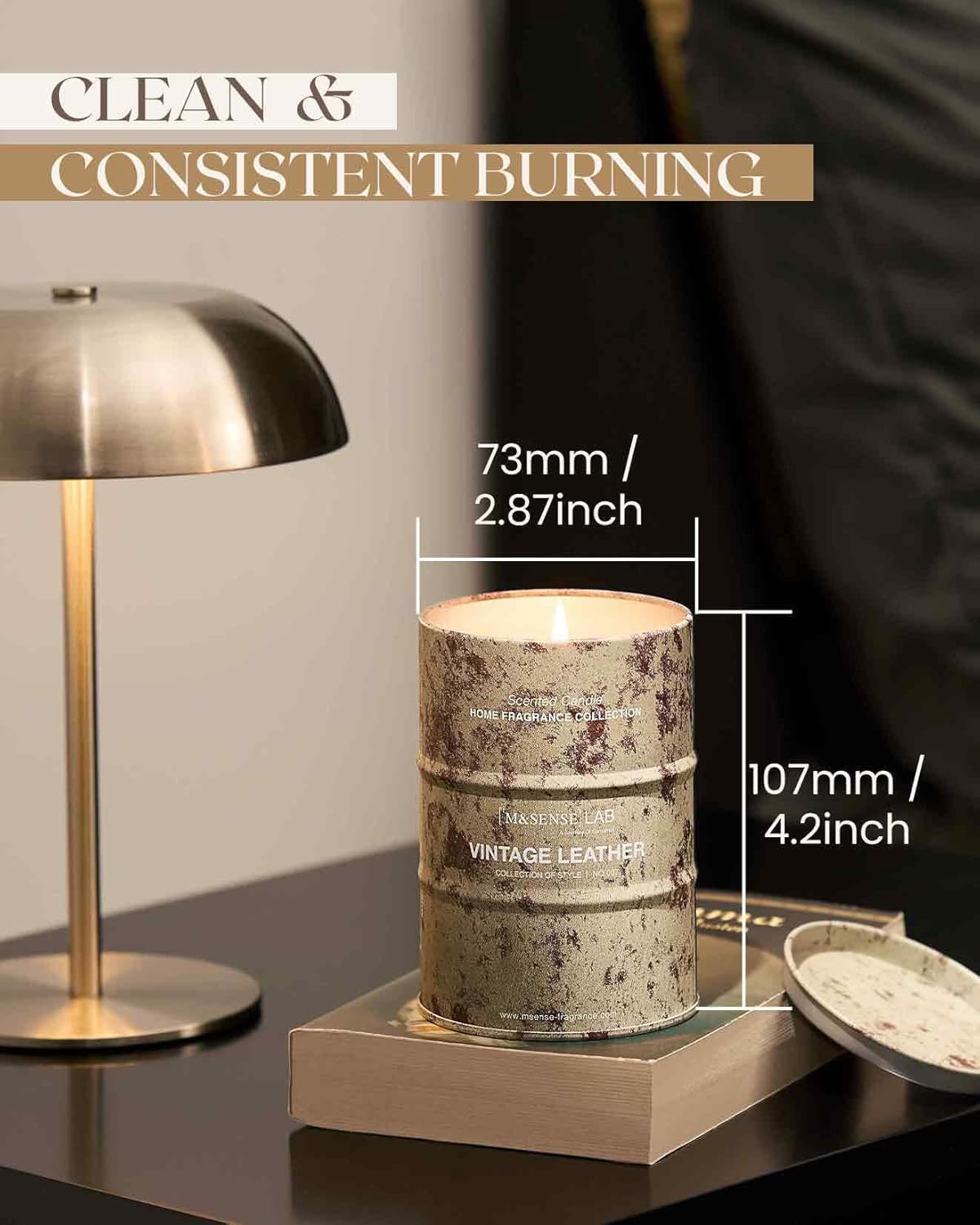 M&SENSE Vintage Leather Scented Candles Natural Non Toxic, Aromatherapy Candle for Stress Relief Meditation Relaxing, Housewarming Gifts for Women Men, 11.3oz 70 Hour Long Burning