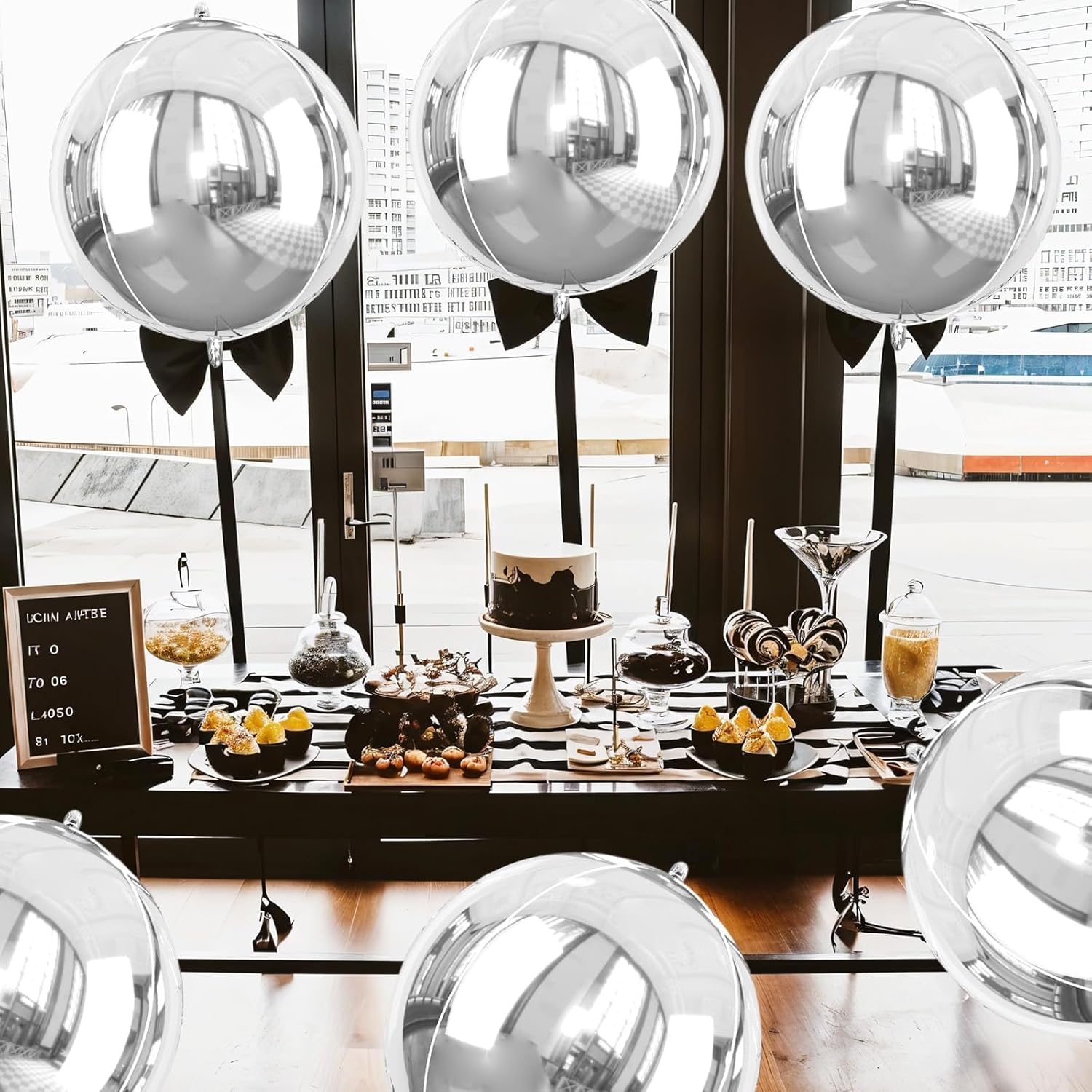 - 【PACKAGR CONTAIN】 This package includes 6 pcs 22-inch silver round 4D foil balloons, 1 pc straw and 1 pc ribbon. These large, eye-catching balloons are perfect for elevating your party decor with a bold and stylish touch