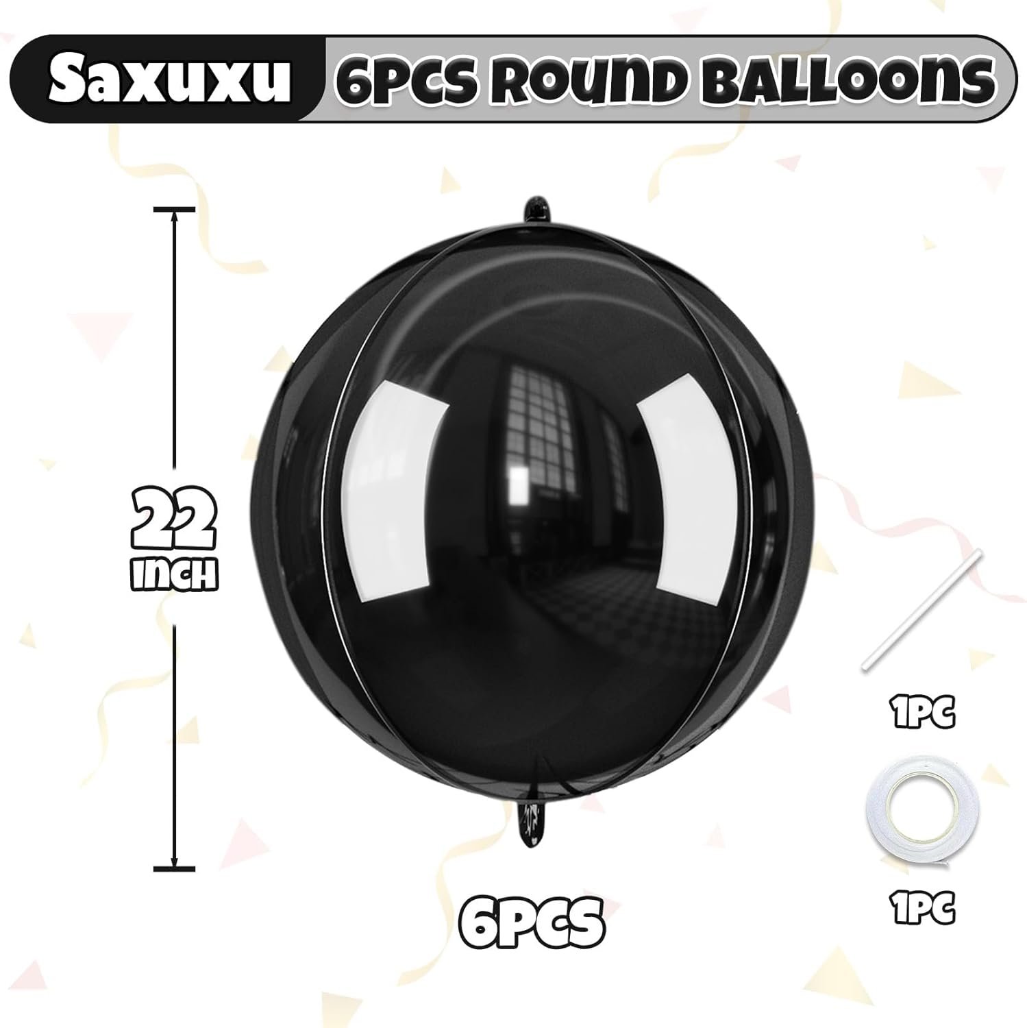 - Package Contains – 6 pcs 22-inch black round 4D foil balloons, 1 pc straw and 1 pc ribbon. These large, eye-catching balloons are perfect for elevating your party decor with a bold and stylish touch.