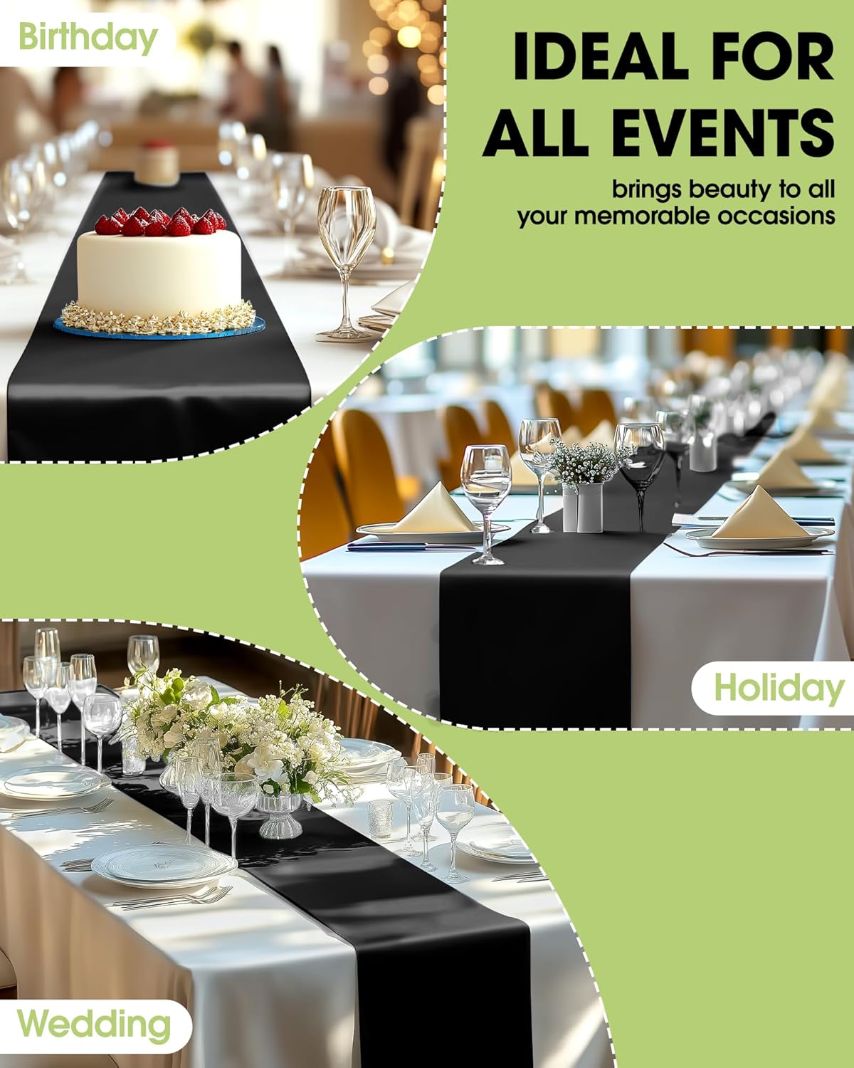 - PREMIUM PLASTIC MATERIAL: Made from premium plastic, this black runner for table is water-resistant and oil-proof, preventing stains and spills. The tear-resistant material adds extra durability, allowing the runner to withstand accidental pulls. Keep your table looking elegant for longer with Pureegg!