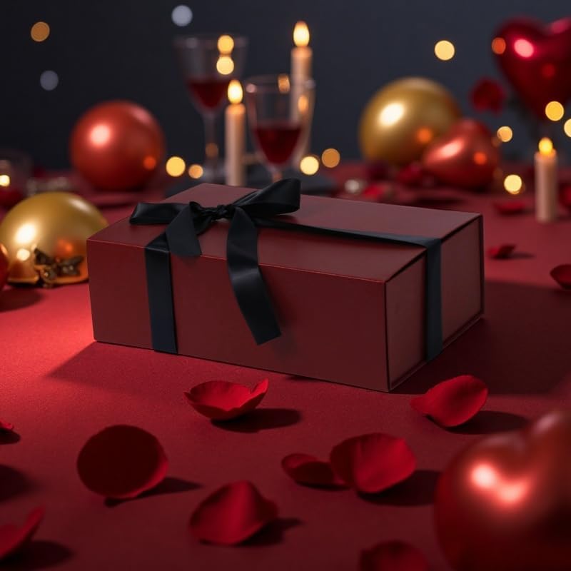 - FRIENDLY DESIGN: This Burgundy gift box has a sturdy magnetic closure that can be easily opened and closed again and again. The surface of the box is printed with special texture and elegant shape.