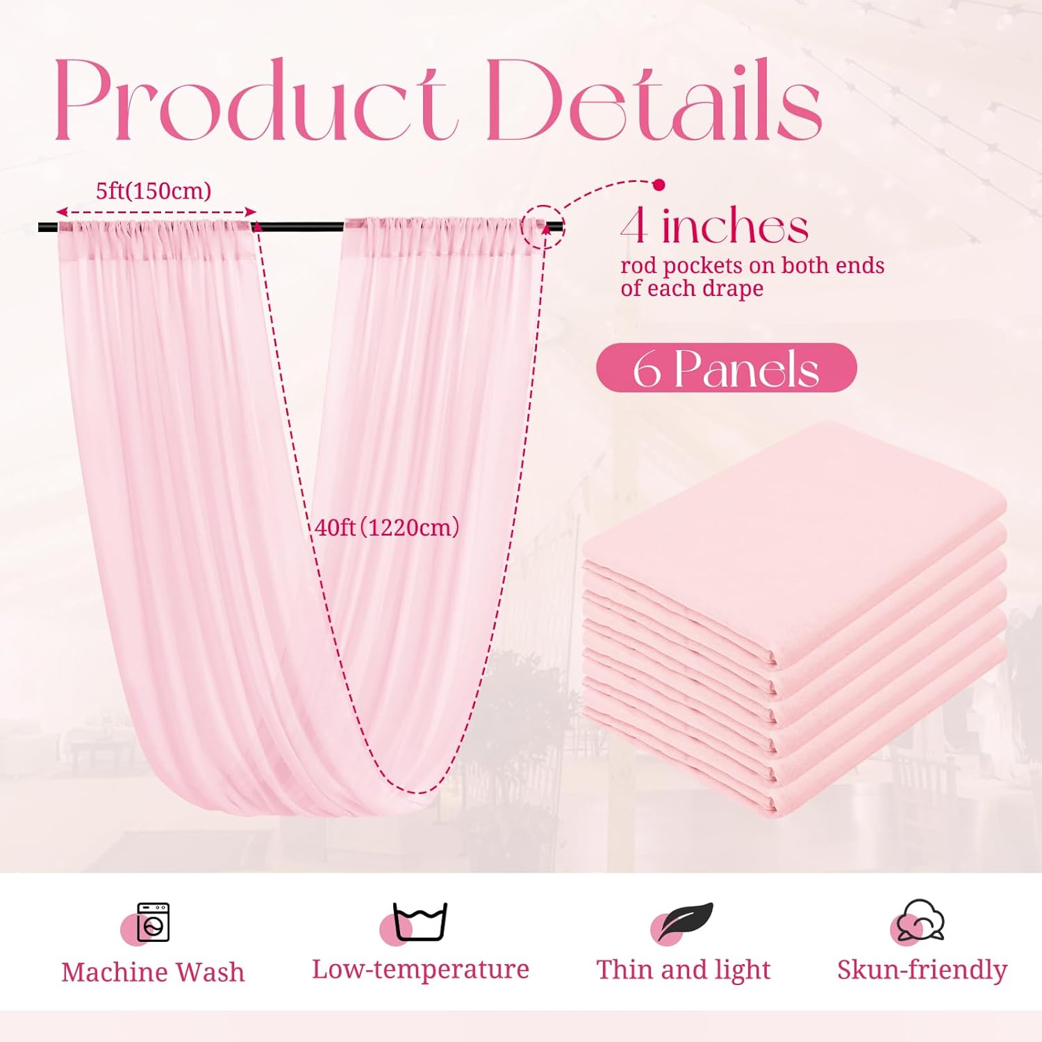 - 【Package Includes】The package will include 6 panels Pink wedding ceiling drapes (Not include stand), each wedding extra long curtain measures 5 feet (60inch)wide x 40 feet(480inch) long.The sufficient quantity can meet your demands for decorating your weddings, parties, receptions.