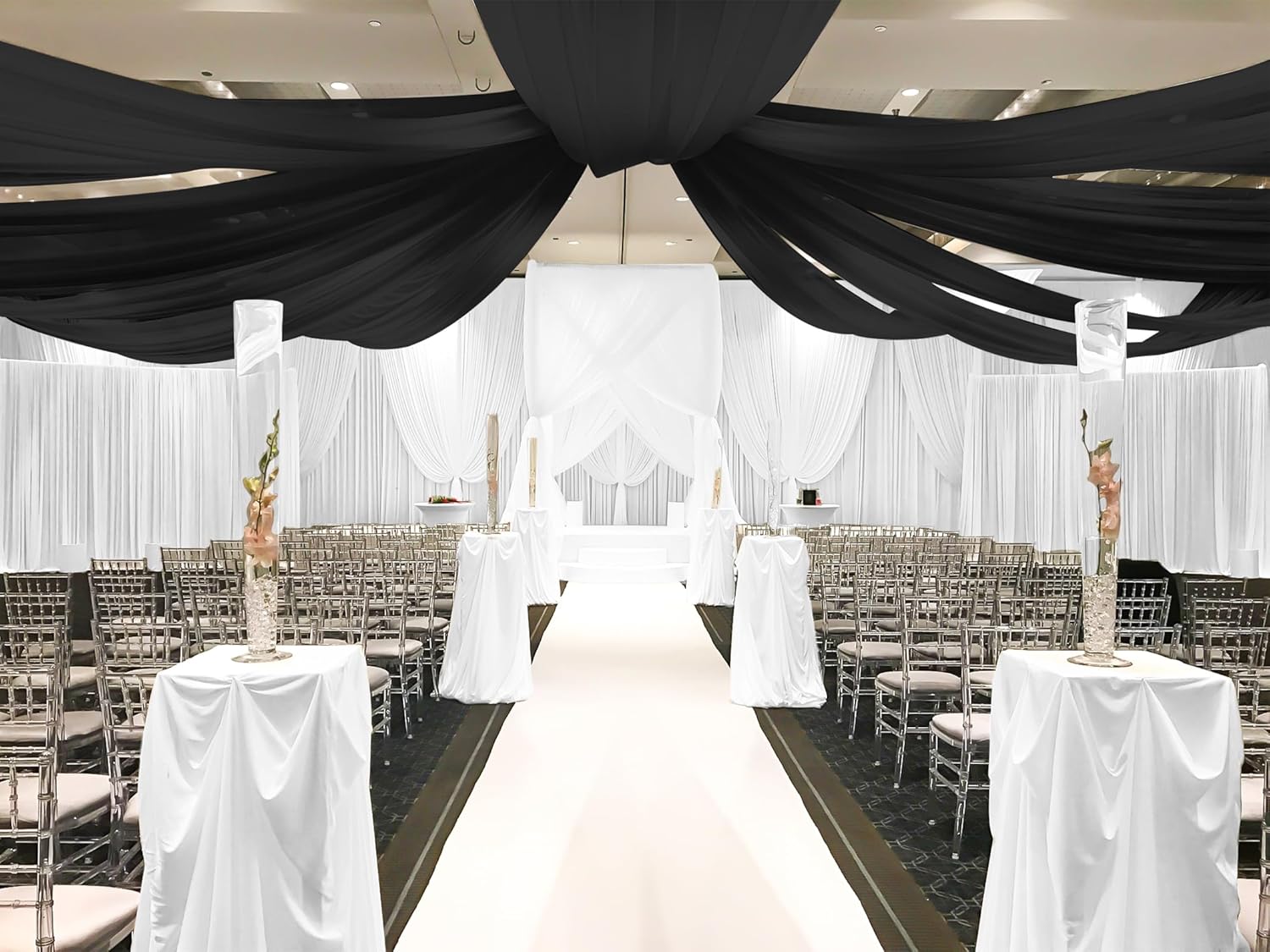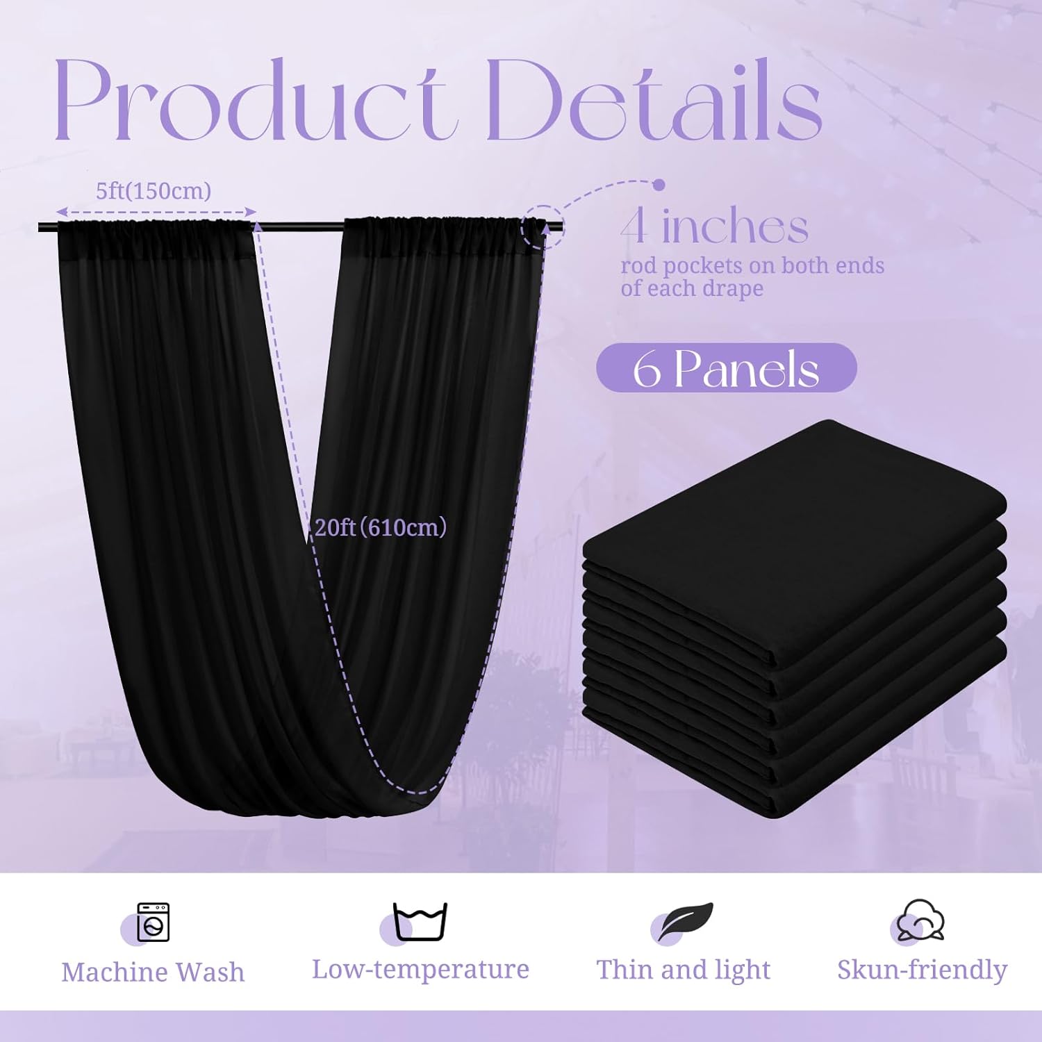 - 【Package Includes】The package will include 6 panels Black wedding ceiling drapes (Not include stand), each wedding extra long curtain measures 5 feet (60inch)wide x 20 feet(240inch) long.The sufficient quantity can meet your demands for decorating your weddings, parties, receptions.