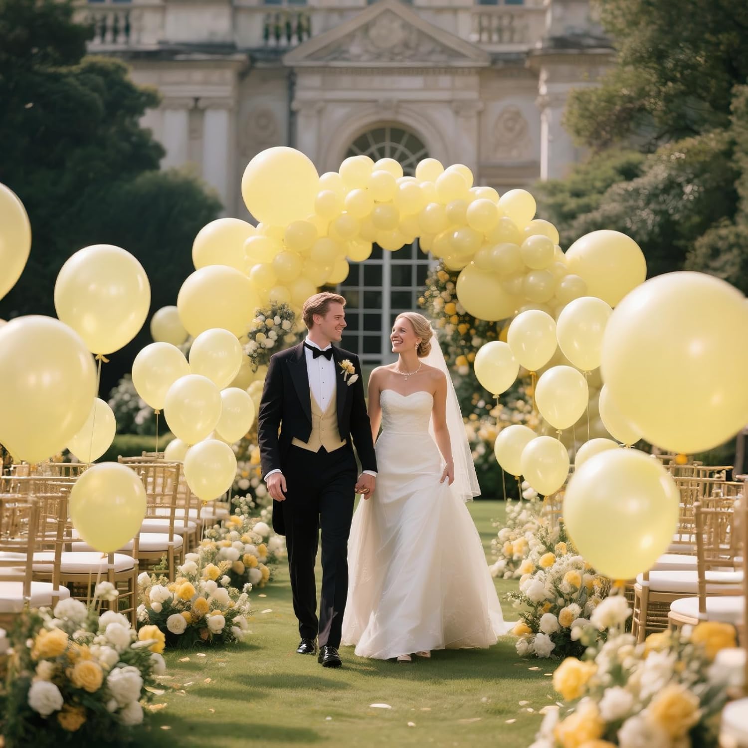 - Our pastel yellow latex balloons 12 inch are made of thickened latex, the color is bright yellow, these pastel yellow balloons can be used as balloons decorations for birthday party, and play around children.