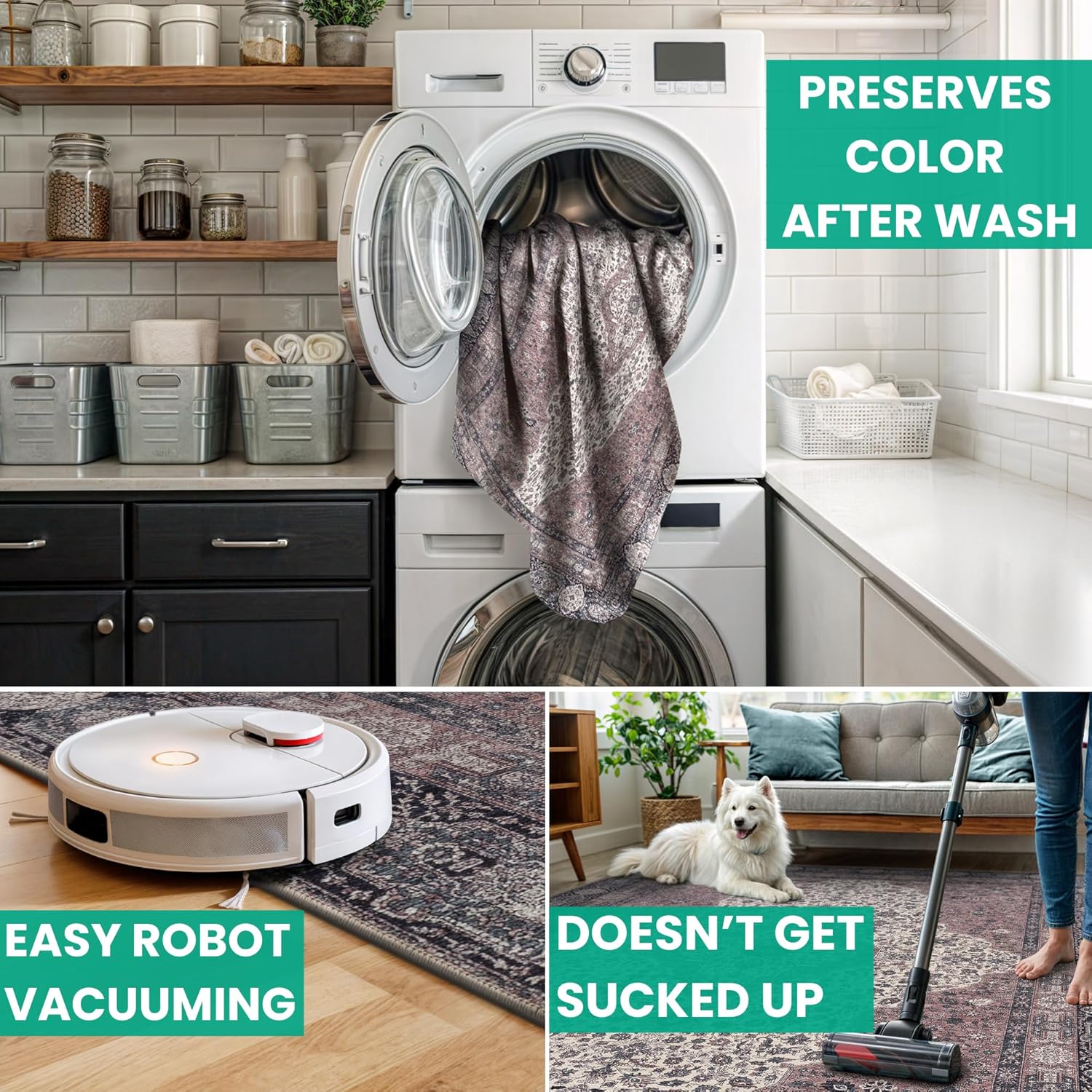 - MACHINE WASHABLE: Machine wash on delicate cycle (do not use bleach) at 85°F (30°C) and line dry or dry on air-only cycle without heat. Vacuum regularly and spot clean small stains. This easy to clean rug is perfect for families with kids and pets, and for high traffic areas.