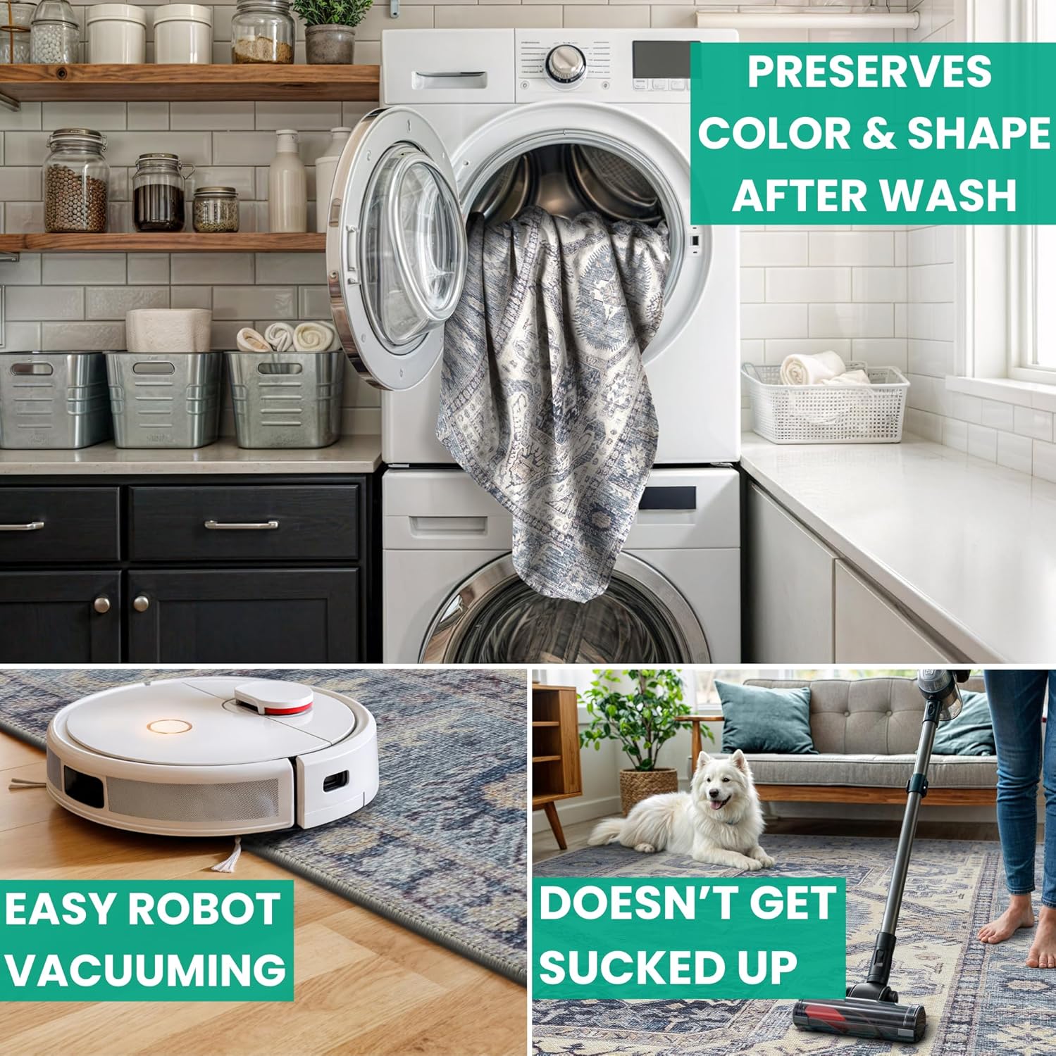 - MACHINE WASHABLE: Machine wash on delicate cycle (do not use bleach) at 85°F (30°C) and line dry or dry on air-only cycle without heat. Vacuum regularly and spot clean small stains. This easy to clean rug is perfect for families with kids and pets, and for high traffic areas.