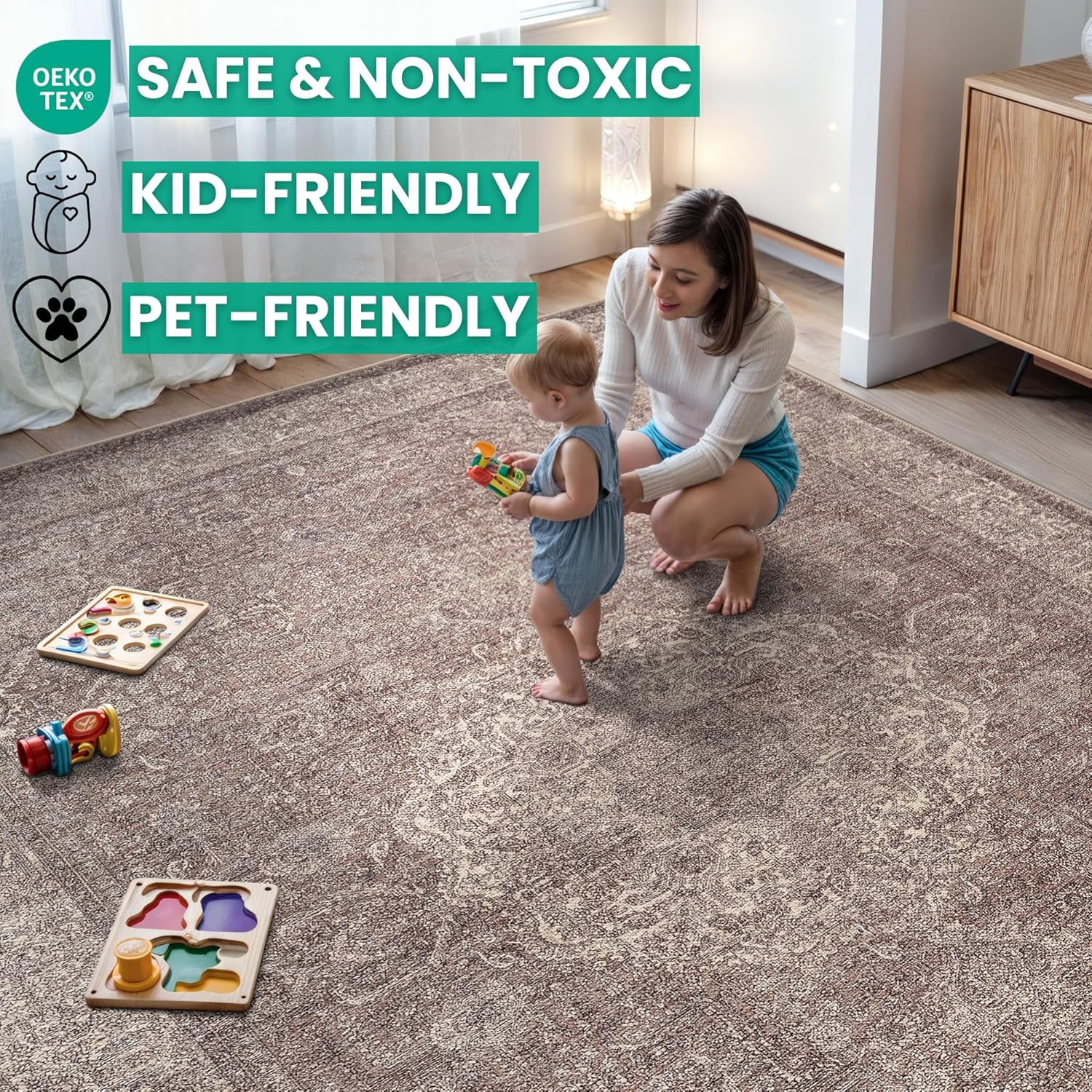 Bloom Rugs Washable Non-Slip 8' x 10' Rug - Taupe/Beige Traditional Medallion Area Rug for Living Room, Bedroom, Dining Room, and Kitchen - Exact Size: 8' x 10'