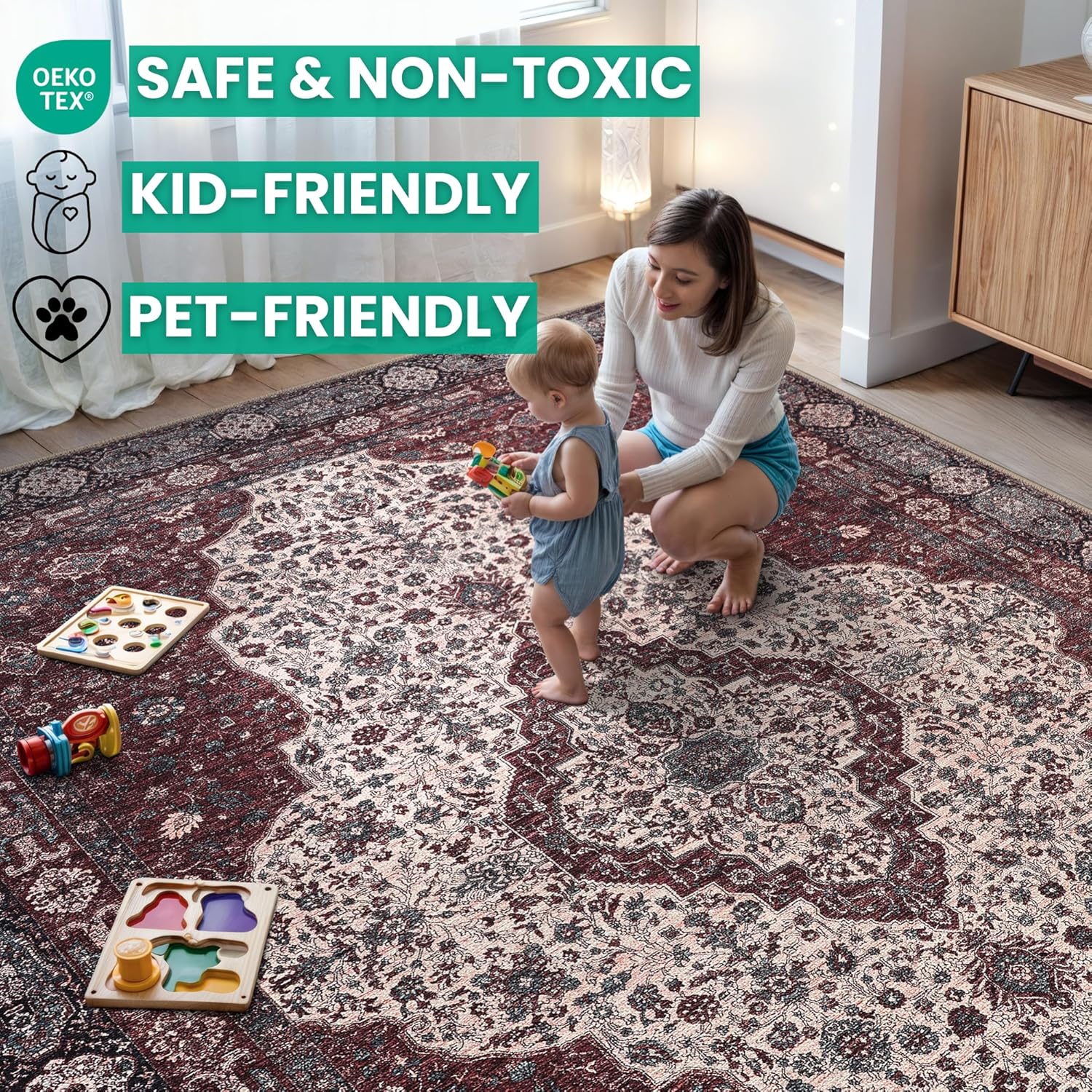 - EASY TO SETUP AND NON-SLIP: This one-piece machine washable rug with non-slip backing attached eliminates any additional setup. Simply unfold and lay flat upon arrival in the desired space. Non-slip backing prevents the rug from moving or sliding without the need for additional rug pad or grippers.