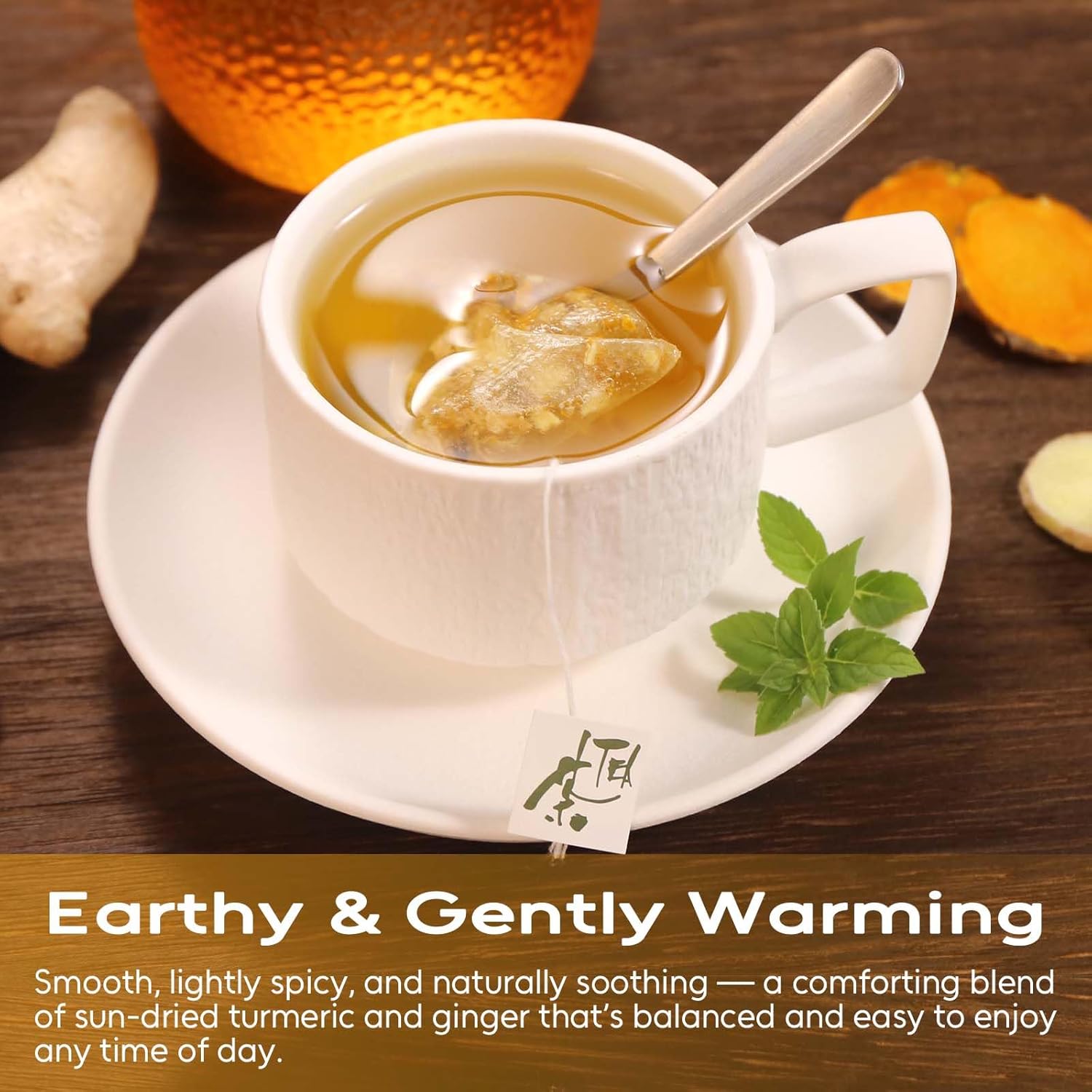 FullChea - Turmeric Ginger Tea Bags, 50 Count, 2g/bag - Premium Turmeric & Ginger- Non-GMO - Caffeine-free - Boost Immunity & Aid Digestion