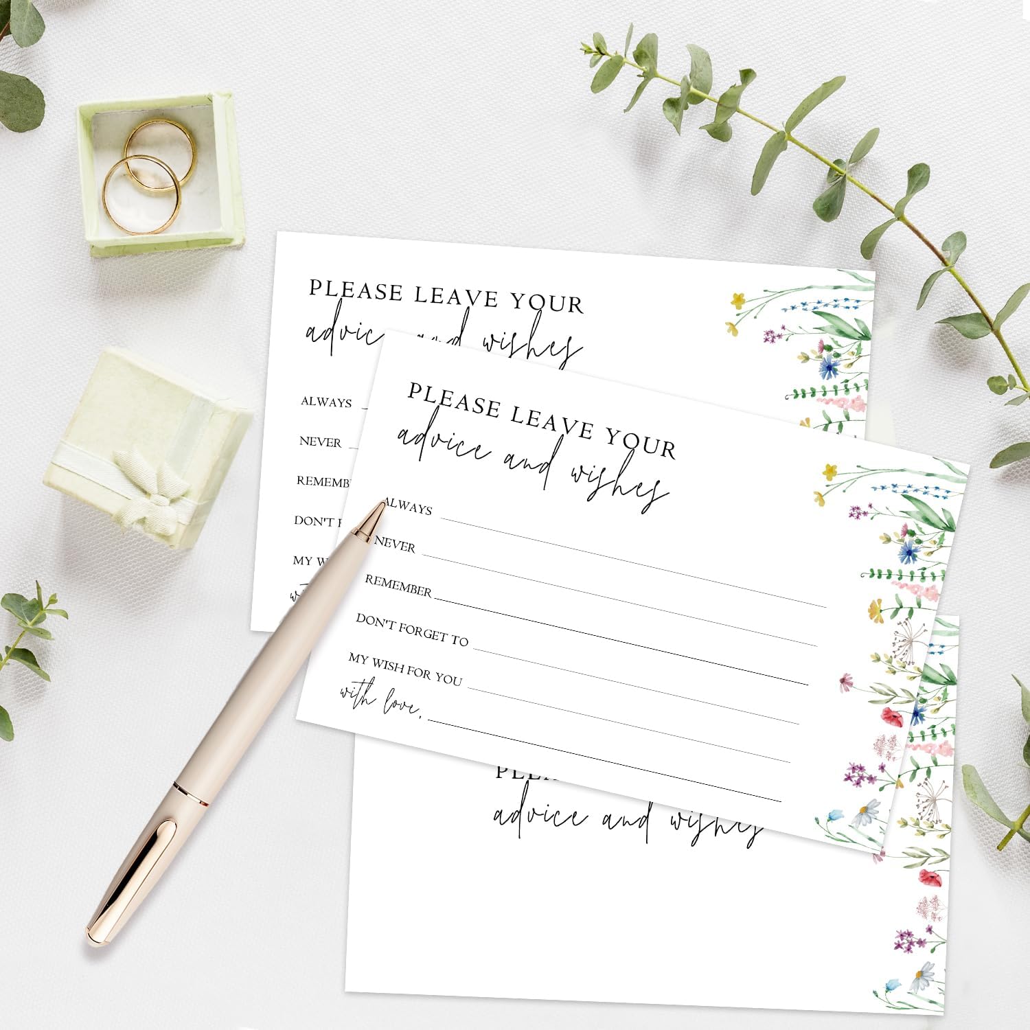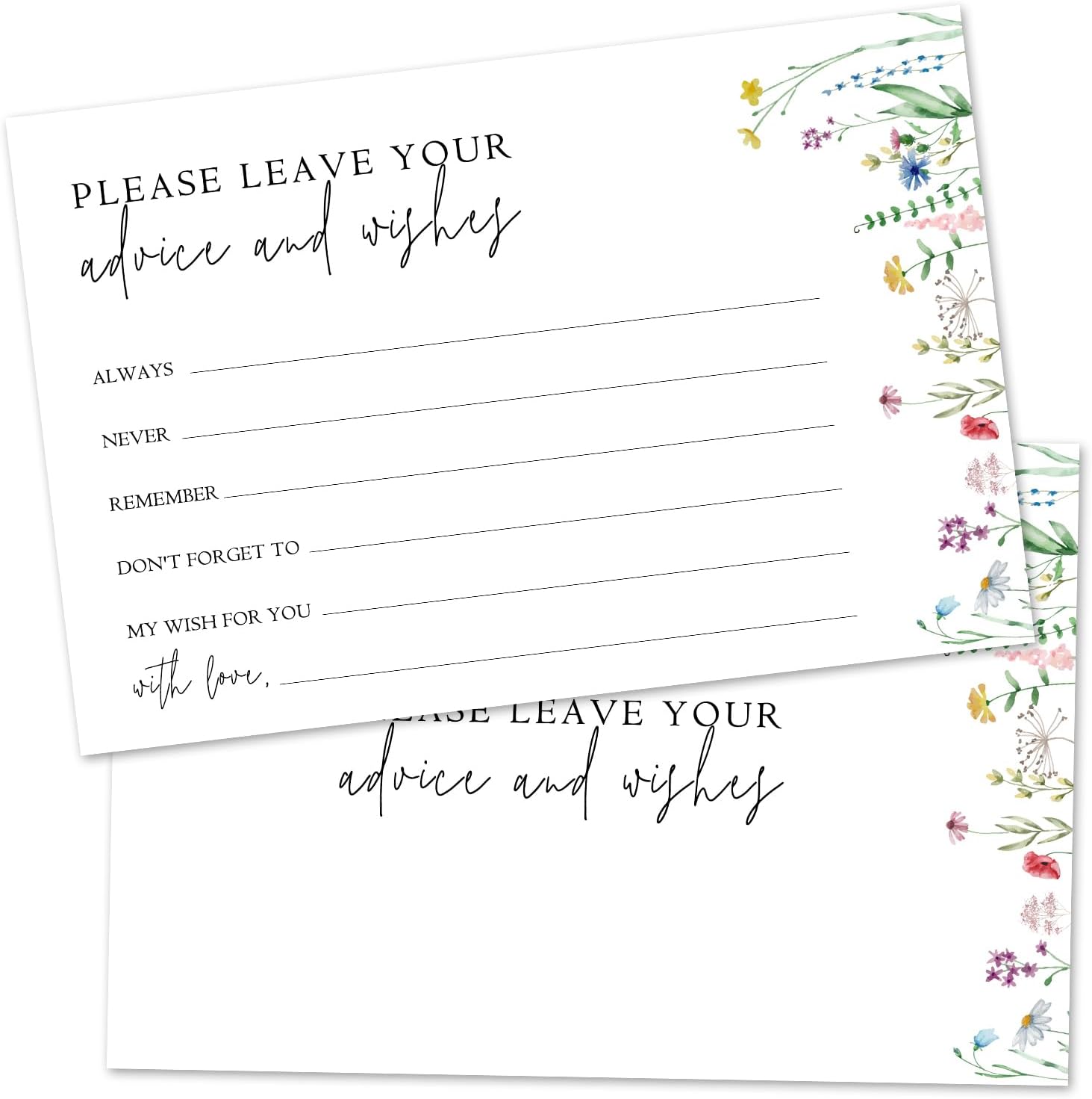 Wildflower Advice And Wishes Cards For The Mr And Mrs, Blank Well Wishes For Baby Shower, Bridal Shower And Graduation Party, Wedding Advice Cards 4x6, Pack of 25 -G15