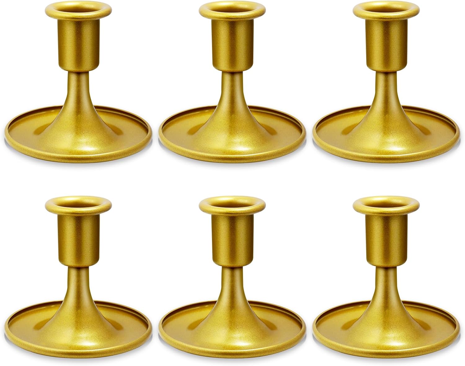 - PACKAGE INCLUDES: A set of 6 gold Candle Stick Holders. Surprise your loved ones with this stylish candle holders for birthdays,thanksgiving ,mother’s day ,Christmas Halloween or any special occasion - Great gift idea. Please note: CANDLES ARE NOT INCLUDED. But You can choose KSWING flameless taper candles if you want, you will find they are perfect matches!!!