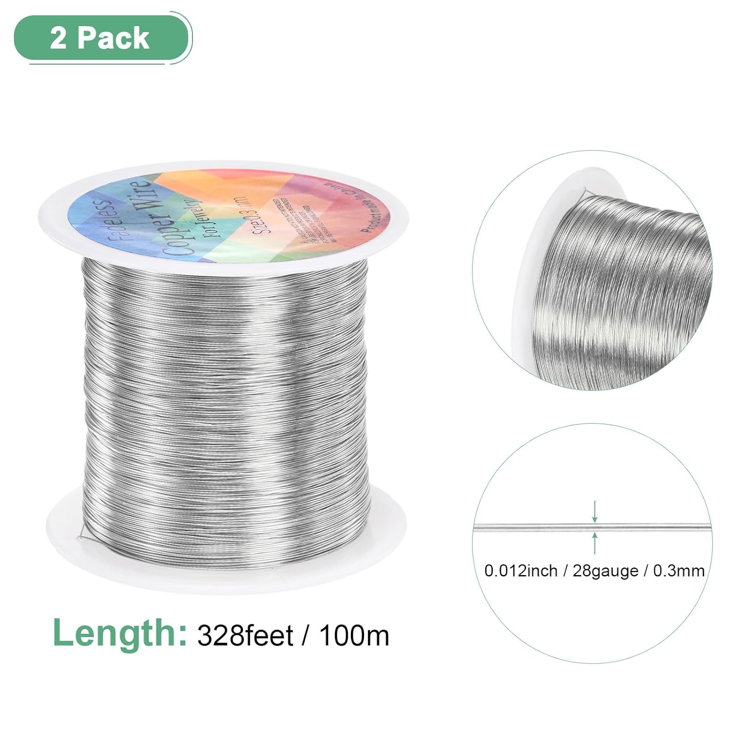 - [Size & Package] - Wire Diameter: 0.3 mm/ 28 Gauge/ 0.012 inch; Each Roll Length: 100 M/ 328 Feet; Package Includes: 2 Rolls x Craft Copper Wire
