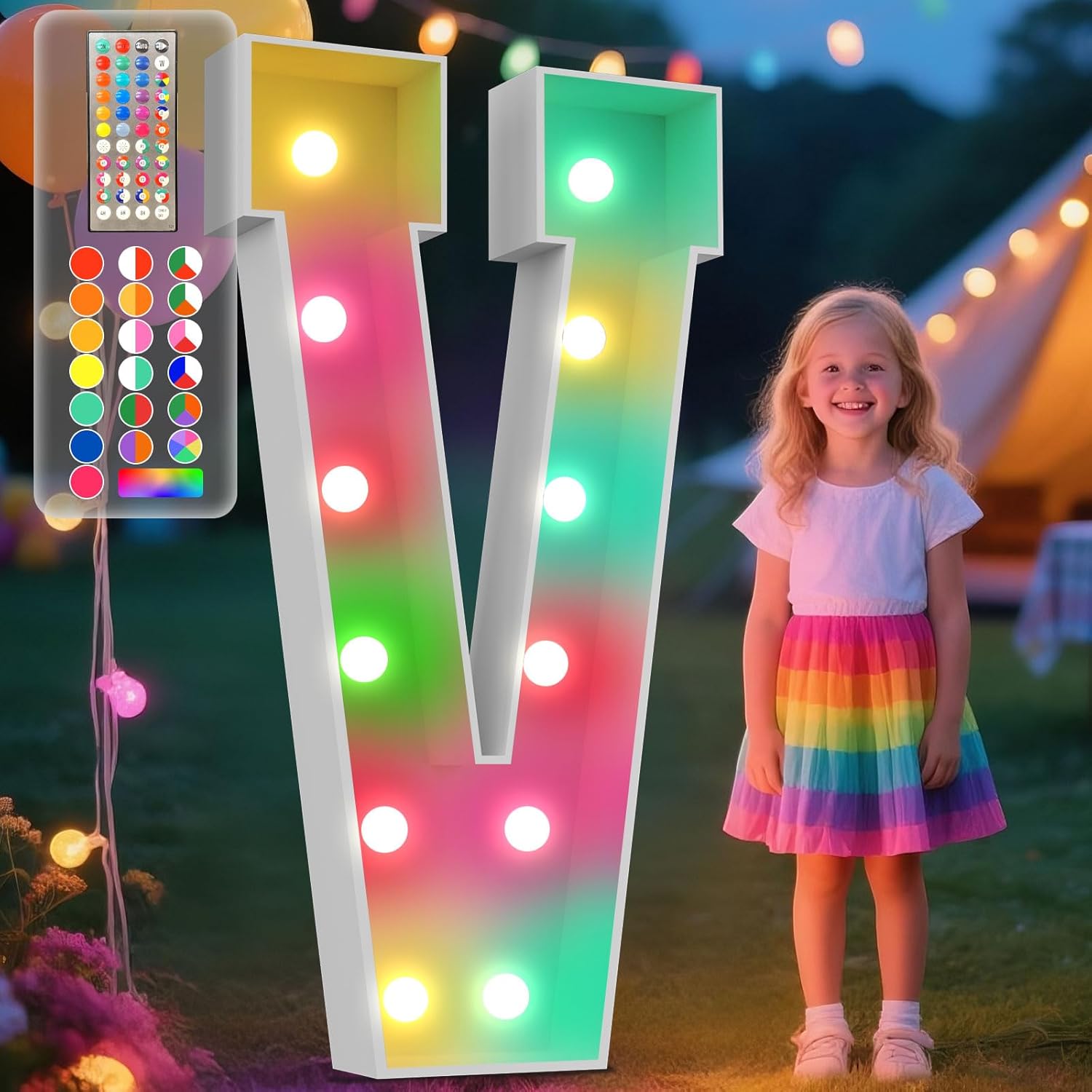 Ledido 4FT Marquee Light Up Letters, 34 Colors Changing Marquee Letter 4 Feet Tall with Remote, Big Letters for Party Wedding Graduation Birthday Decorations, Large Light Up Letter V