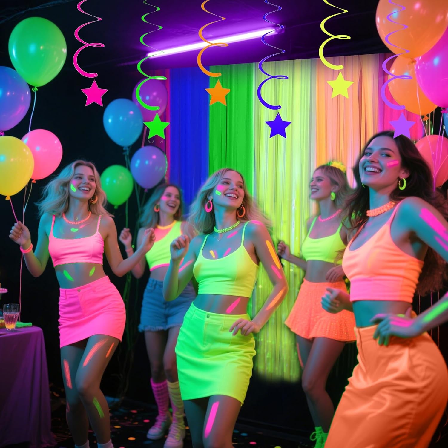 - Multi-Use Function and Occasions: These glow in the dark decorations suitable for blacklight party, rainbow party, neon party, fluorescent parties, disco bachelorette party, birthday party, euphoria party, carnival, dance party, wedding, holiday carnivals, graduations, pride month decorations, anniversaries, retirement, banquets, holiday celebrations, Halloween, Christmas, school events or occasion that blacklight party is required. Glow in the dark streamers for parties to make your party perfect and fun. Your guest will love them and take photo with them.