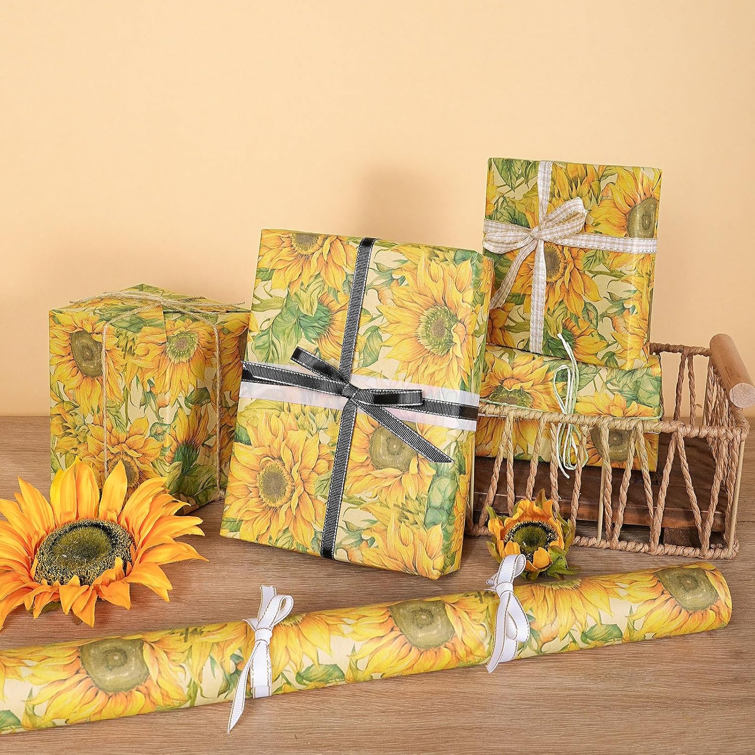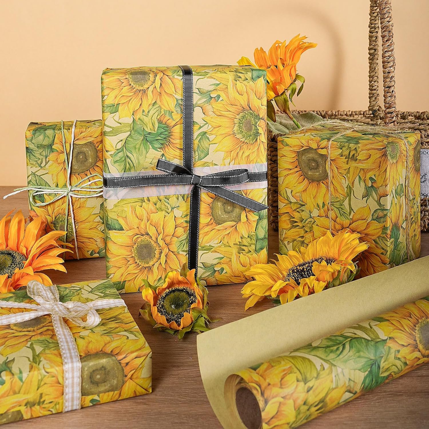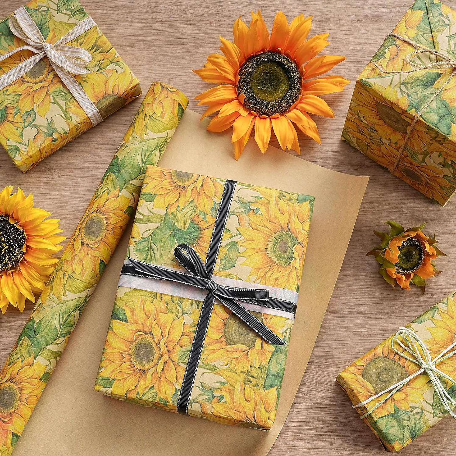 RUSPEPA Sunflower Wrapping Paper Roll for Women Girls, Mini Roll, Watercolor Sunflower Design, Fall Floral Kraft Gift Wrp Paper for Birthday, Thanksgiving, Autumn Gifts, 17 Inches x 16.4 Feet
