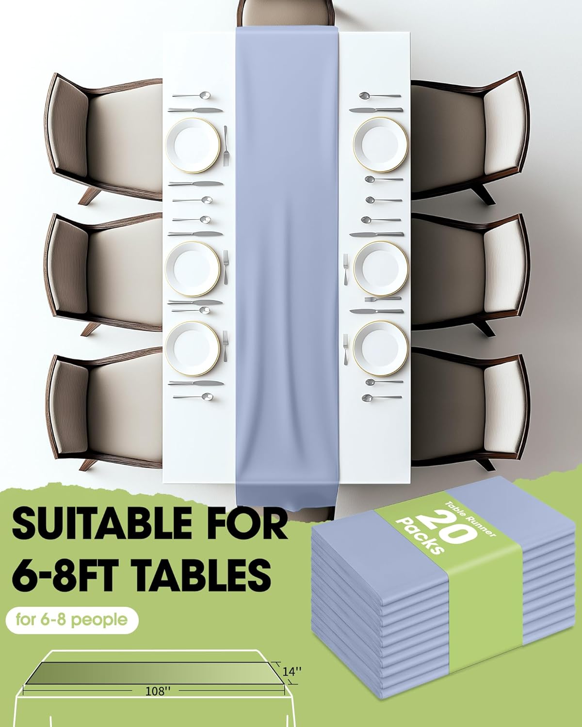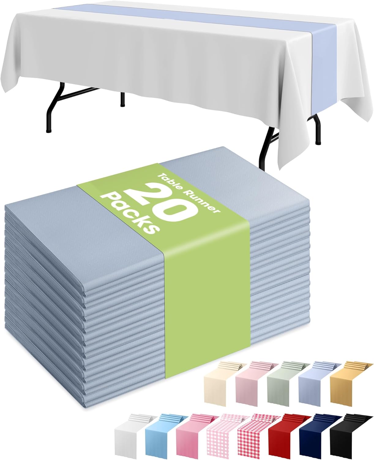 - BUDGET-FRIENDLY: This set includes 20 disposable plastic table runners, enough for multiple tables or events while helping you stay within budget. There's no need for extra spending on cleaning or maintenance. Make your home decorations worry-free and cost-effective.