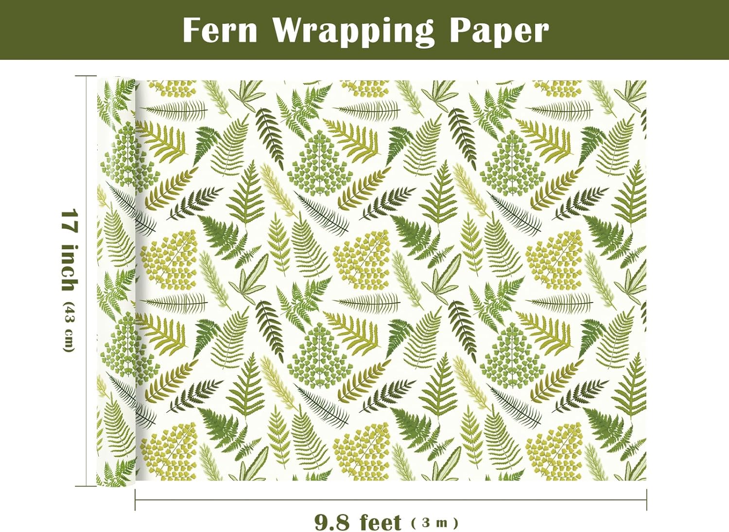 WRAPAHOLIC Fern Wrapping Paper Roll - Mini Roll - 17 Inch x 9.8 Feet - Woodland Fern Botanical Wrapping Paper Perfect for Birthday, Wedding, Baby Shower