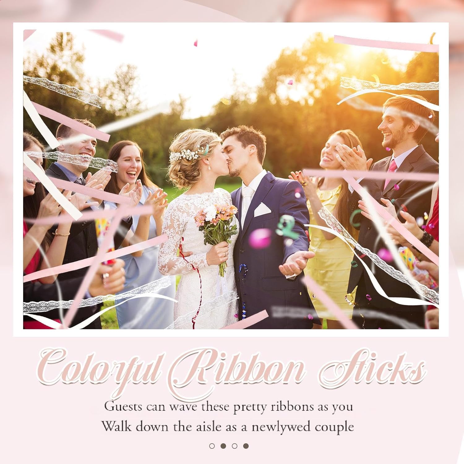 - Easily Create a Cheerful Ambiance: the fairy wand is tied with fluttering ribbons, elegant lace and delicate bell, guests can wave them to add ambiance to your wedding; It also can serve as a photo prop when you need to take a group photo; These ribbon sticks are also exquisite props for games or celebrations
