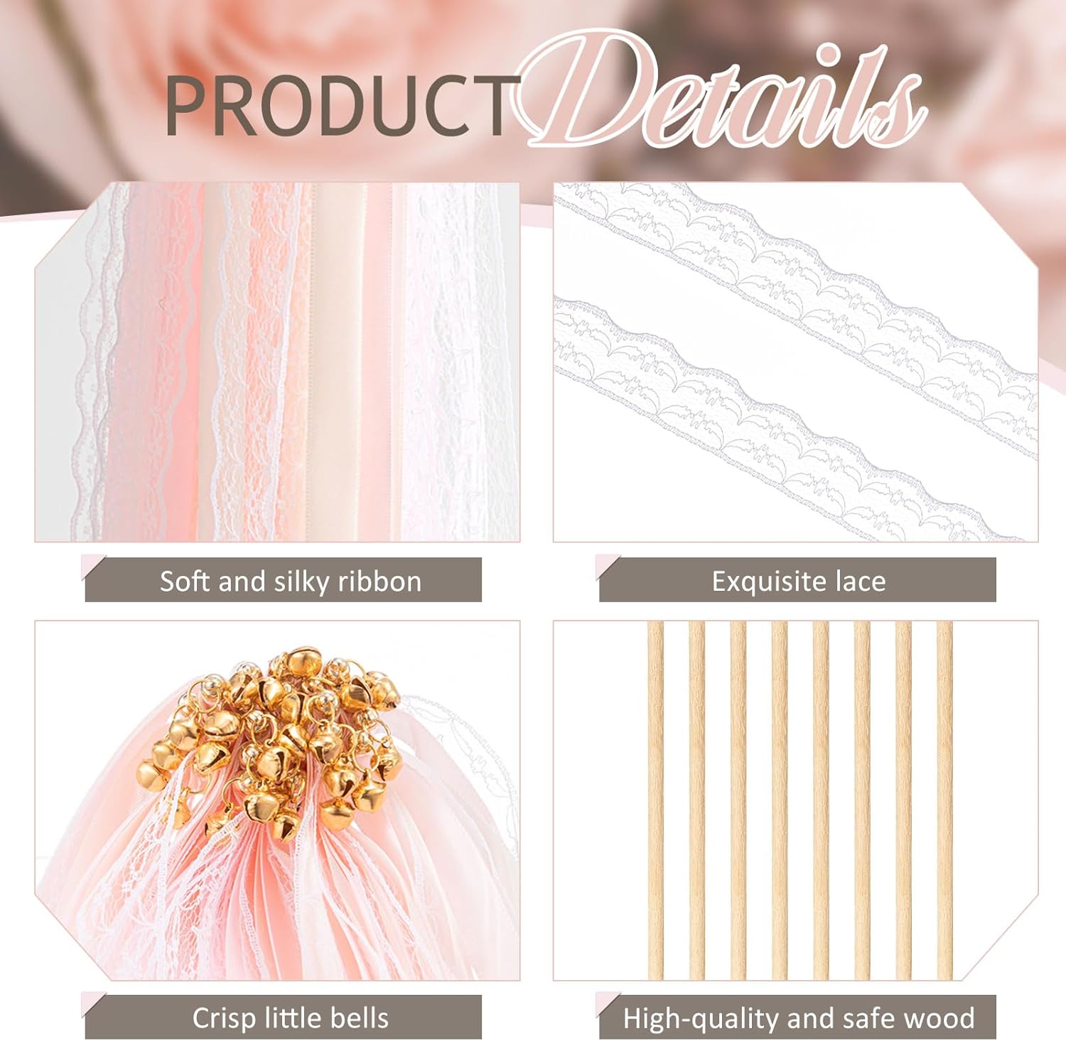 - Large Quantity: the package contains 150 pieces of wedding wands, with pink and beige ribbons, white lace, bells, enough for you to decorate an impressive wedding or party; You can also share them with your family and mates