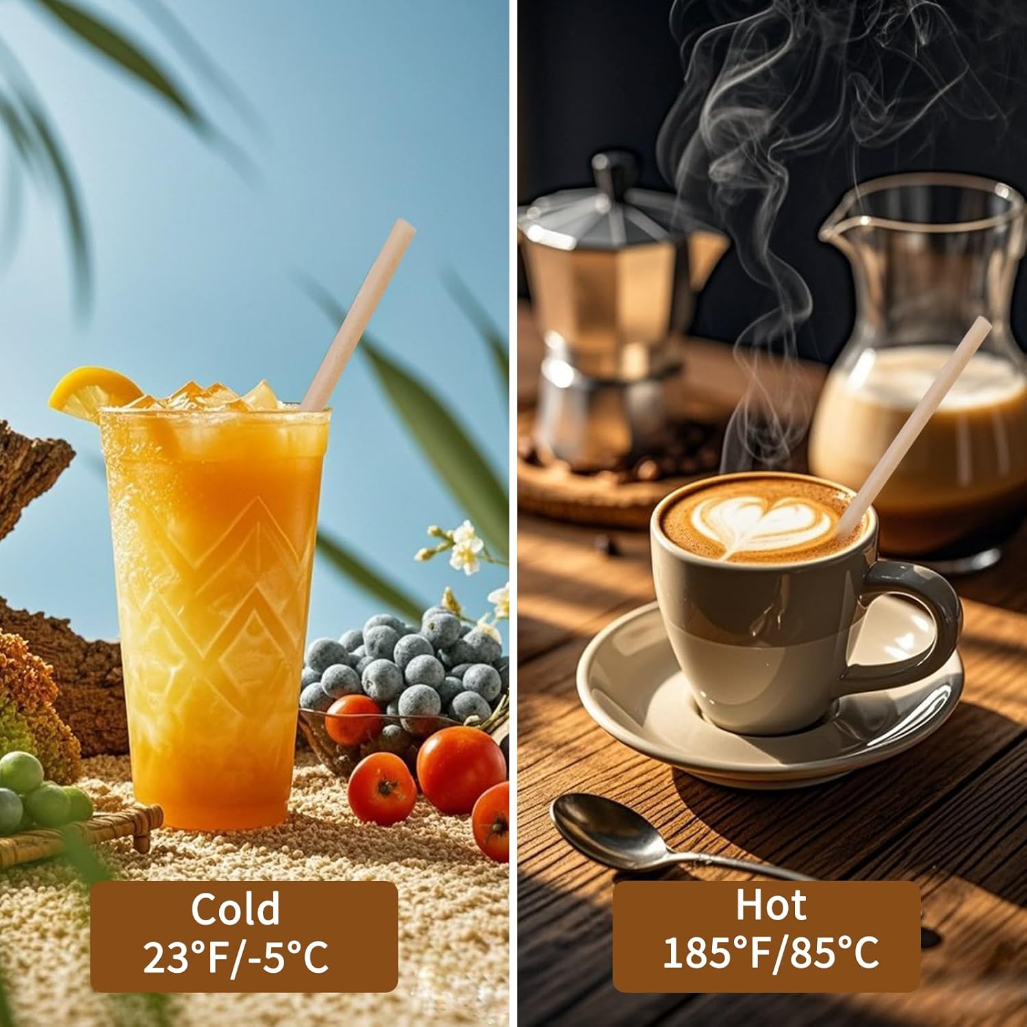 - High-quality materials - The long straws disposable are made of sugarcane fiber, which is made of 100% natural plant materials. The drink straws will neither dissolve nor impart flavor to your drinks. The bulk straws are suitable for hot coffee, juice, iced tea, and other hot or cold drinks