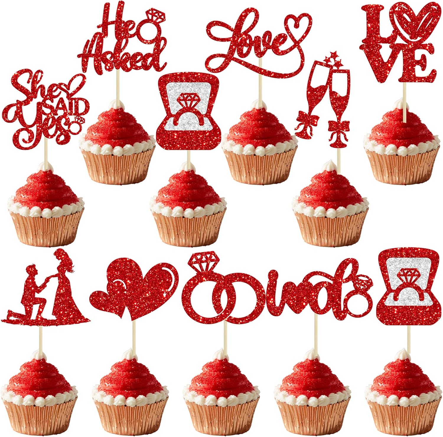- 【NO Required】: She Said Yes Cupcake Toppers can put in the cake directly! These She Said Yes Cupcake Toppers saves your time and super easy to use. You can easily dress up your cakes, yes! but don't stop there, put them into desserts, cookies, fruit pieces, appetizers, muffins and so much more!
