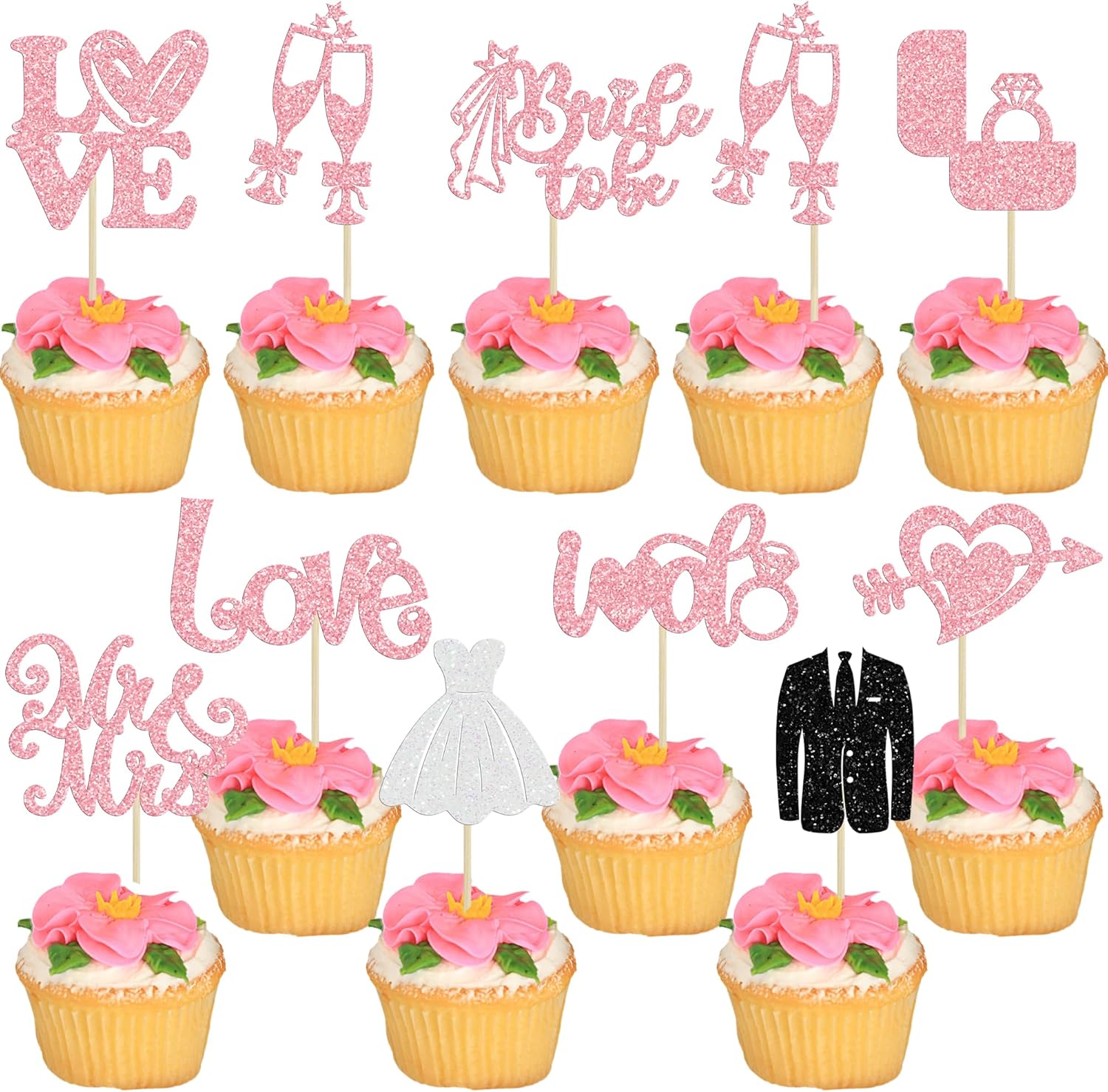 - 【NO Required】: Bride to be Cupcake Toppers can put in the cake directly! These Bride to be Cupcake Toppers saves your time and super easy to use. You can easily dress up your cakes, yes! but don't stop there, put them into desserts, cookies, fruit pieces, appetizers, muffins and so much more!