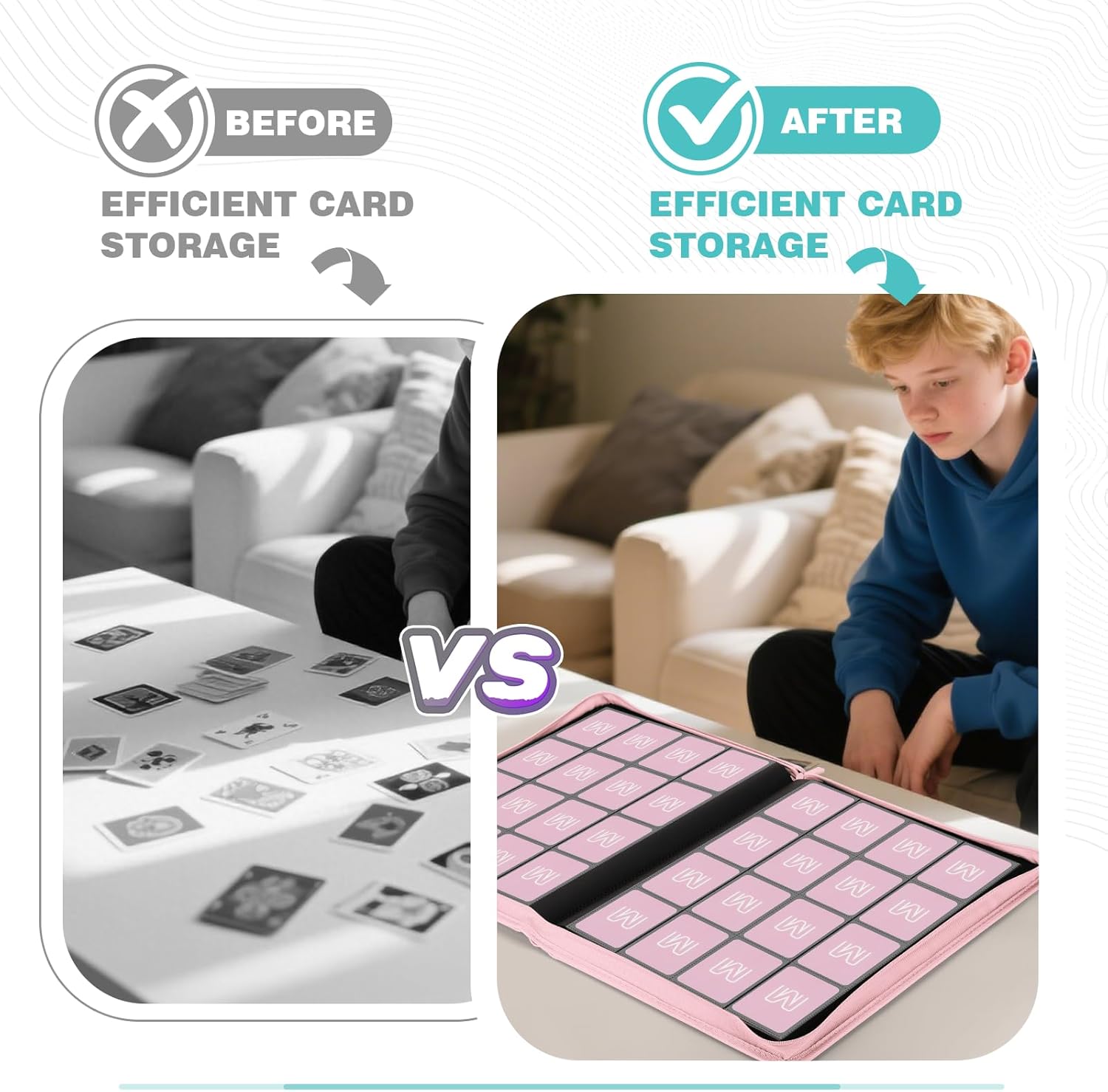- 【LARGE CAPACITY 】It features an interior suede lining, providing a luxurious touch and ensuring durability.Our card binder holds up to 1024 trading cards with 16 pockets per page,both sides can hold cards,totalling 32 pages.Large storage capacity to meet your card collection needs ,keep all your cards organised.