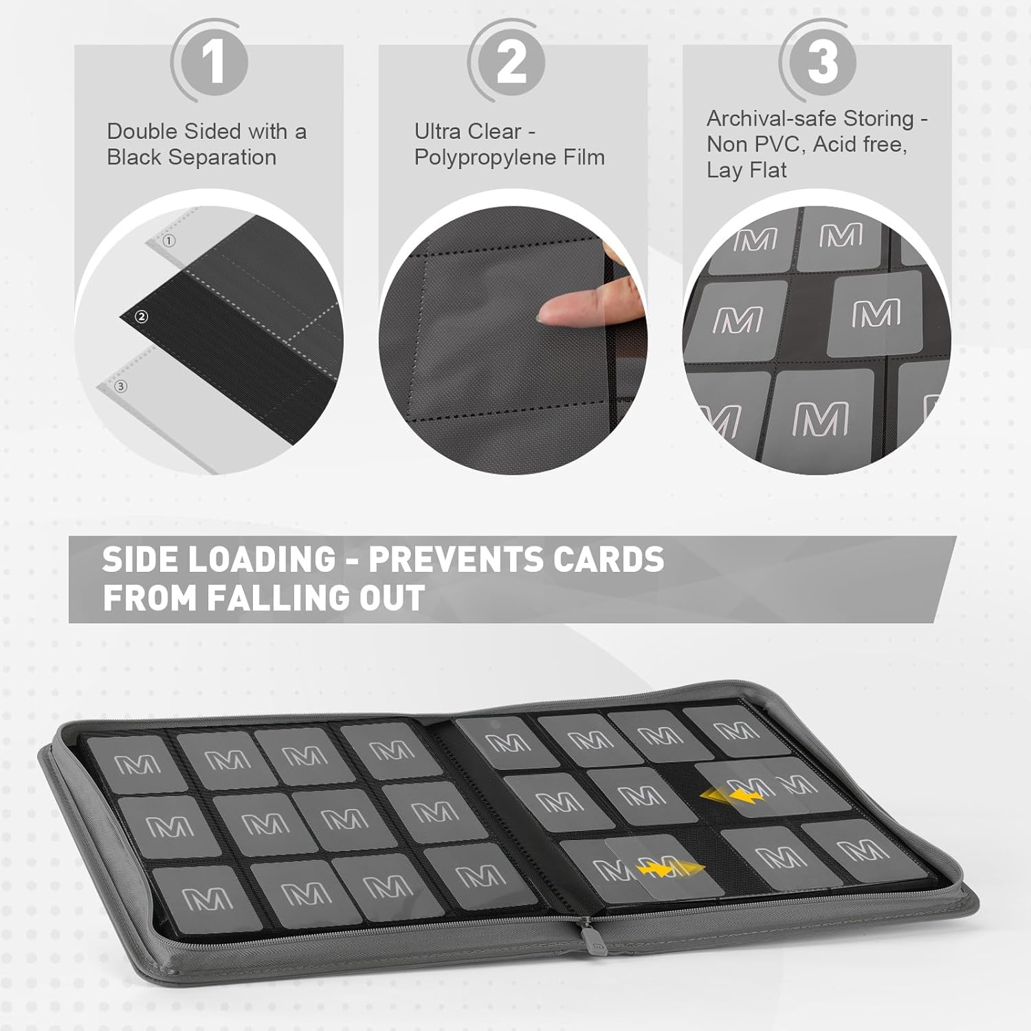 - 【PREMIUM QUALITY MATERIAL】 Card Binder is designed with textured PU leather material finish which is comfortable.this trading card binder is not only stylish but also ensures durability and long-lasting performance.The waterproof and durable card sleeves provide extra protection for your cards, keeping them safe from spills, moisture, and everyday wear and tear.