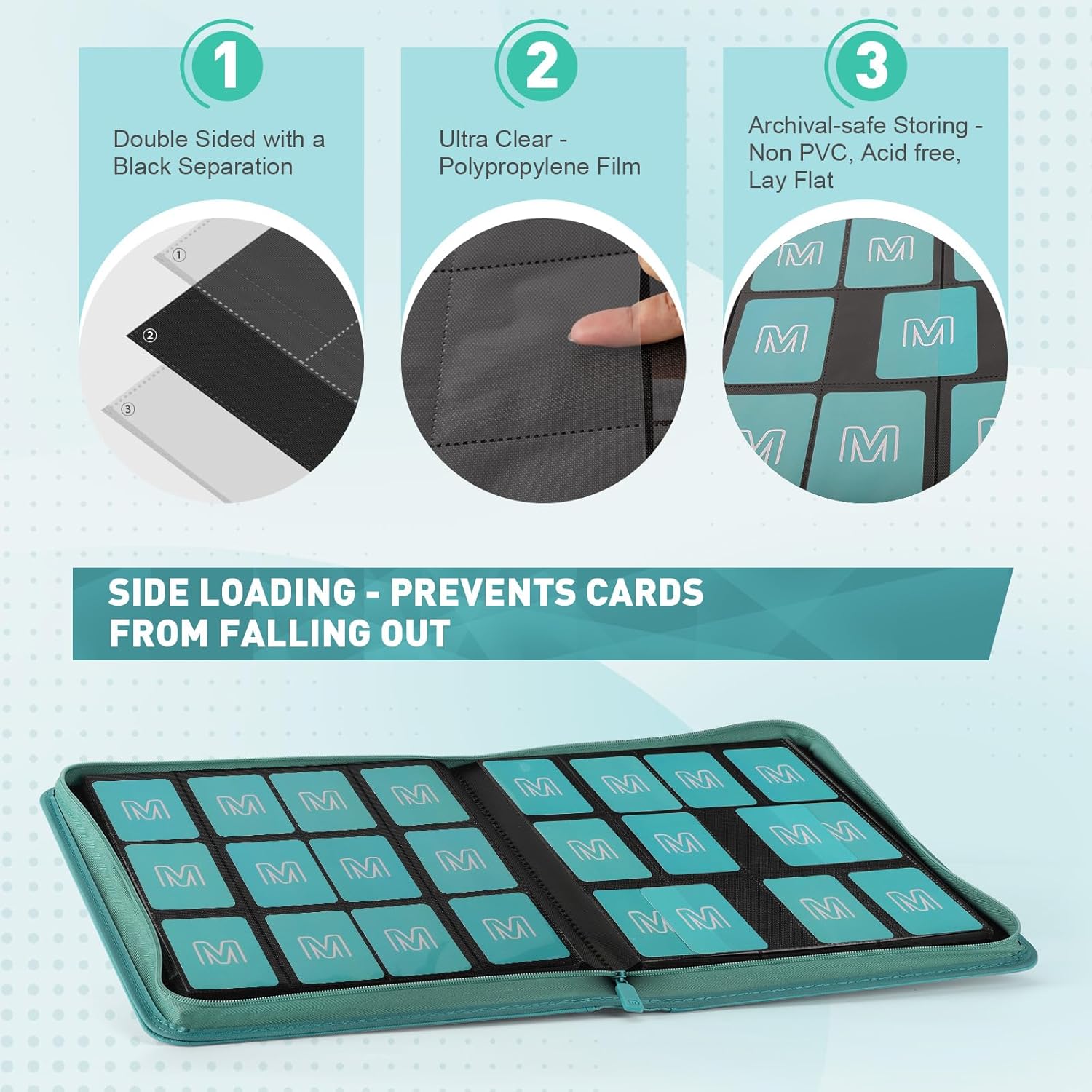 - 【PREMIUM QUALITY MATERIAL】 Card Binder is designed with textured PU leather material finish which is comfortable.this trading card binder is not only stylish but also ensures durability and long-lasting performance.The waterproof and durable card sleeves provide extra protection for your cards, keeping them safe from spills, moisture, and everyday wear and tear.