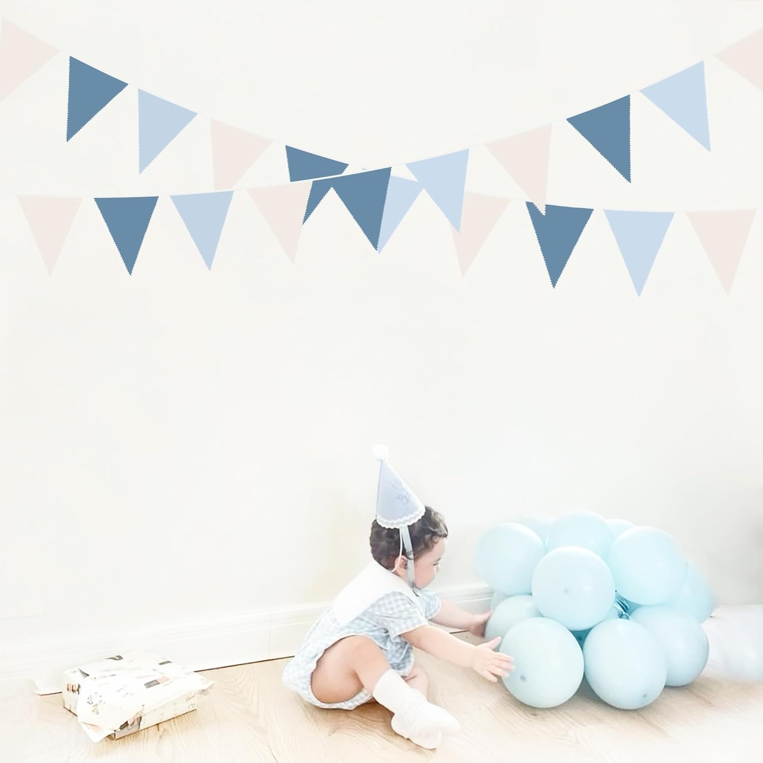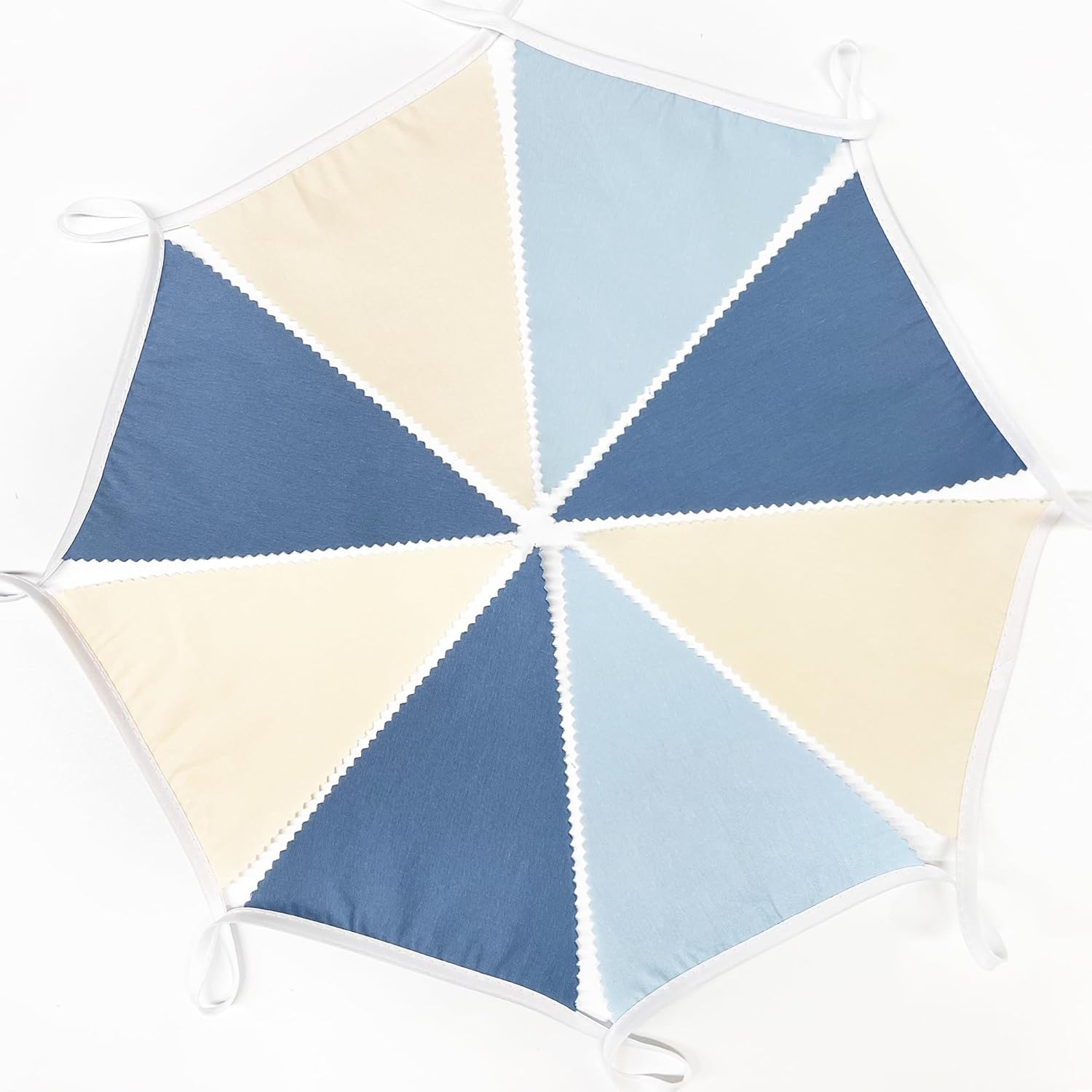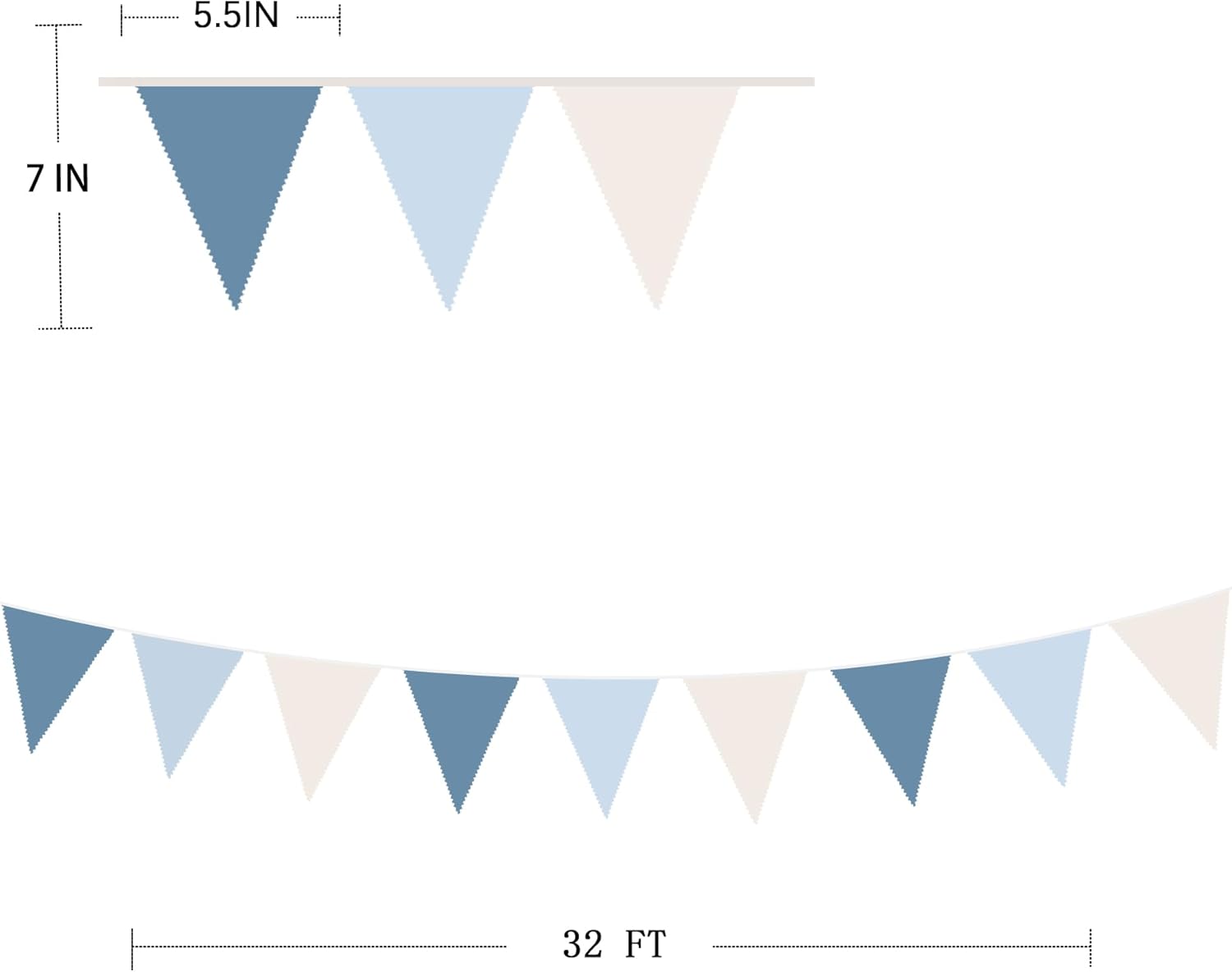 - Package Including:1 pack dusty blue fabric bunting banner garland in dusty blue, light blue and beige colors, with 36pcs flags in 10M/32.8Feet. Flag Size: 5.5in width x 7in height