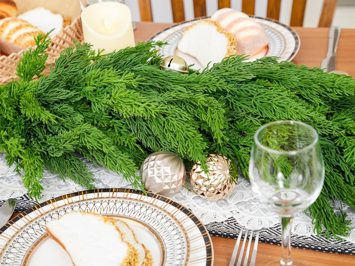 - 【Distinctive Christmas Applications】 This fuller 6 ft Cypress garland is ideal for creating several decorative displays: Mantle, Fireplace, Table Centerpieces, Wall, Stairs, or hanging it as a eye-catching decorative on your front door. Plus, there are countless DIY possibilities to explore.