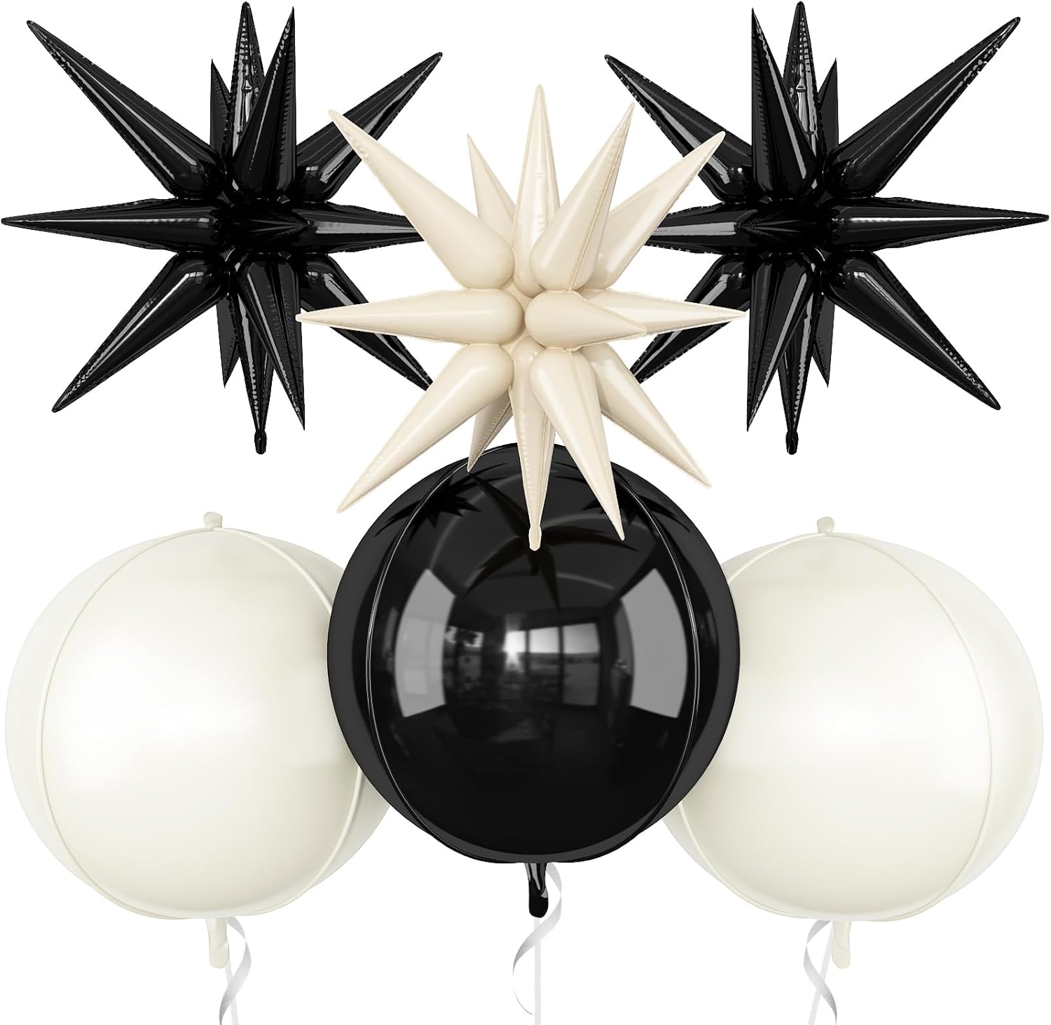 - 【Package】The package includes 3pcs 22Inch 4D ball foil balloons(cream white x 2,black x 1),3pcs 22Inch star foil balloons(black x 2,cream white x 1),and ribbon.These huge balloons can help you decorate your party better.